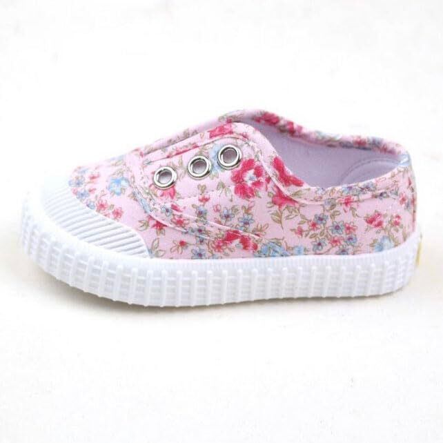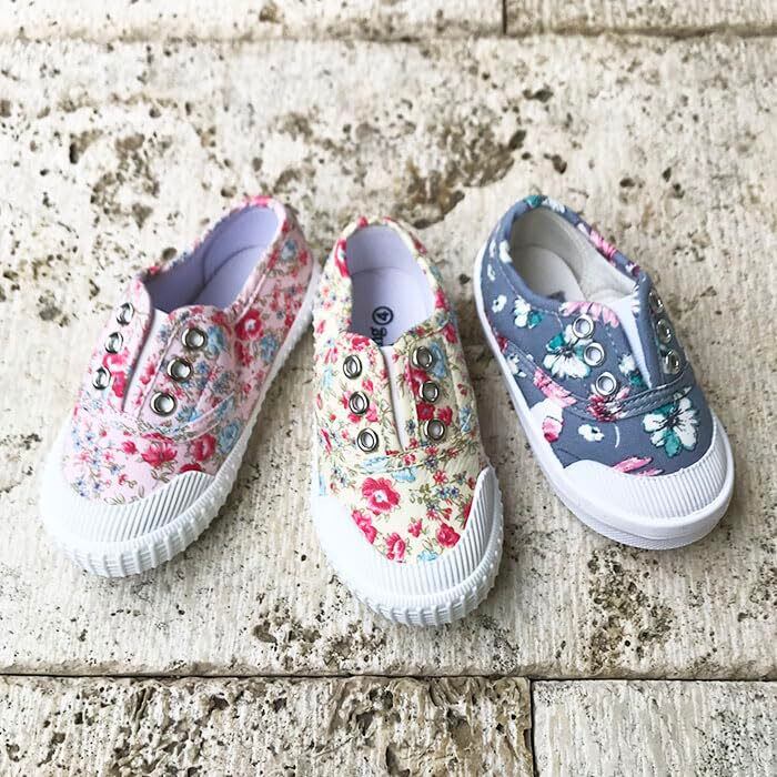女の子の大好きな花柄の靴。ヒモ無しでスリッポンタイプで履けるので、楽チンです。ありそうでなかった花柄の靴ですが、子供っぽくないお洒落な花柄です。*スリッポンタイプの靴なので、脱げないようにぴったりめのサイズになっております。また、海外製品のため、靴の幅が細めのお作りになっております。サイズに迷われた場合は、1サイズ大きめのサイズを選択されることをおススメいたします。