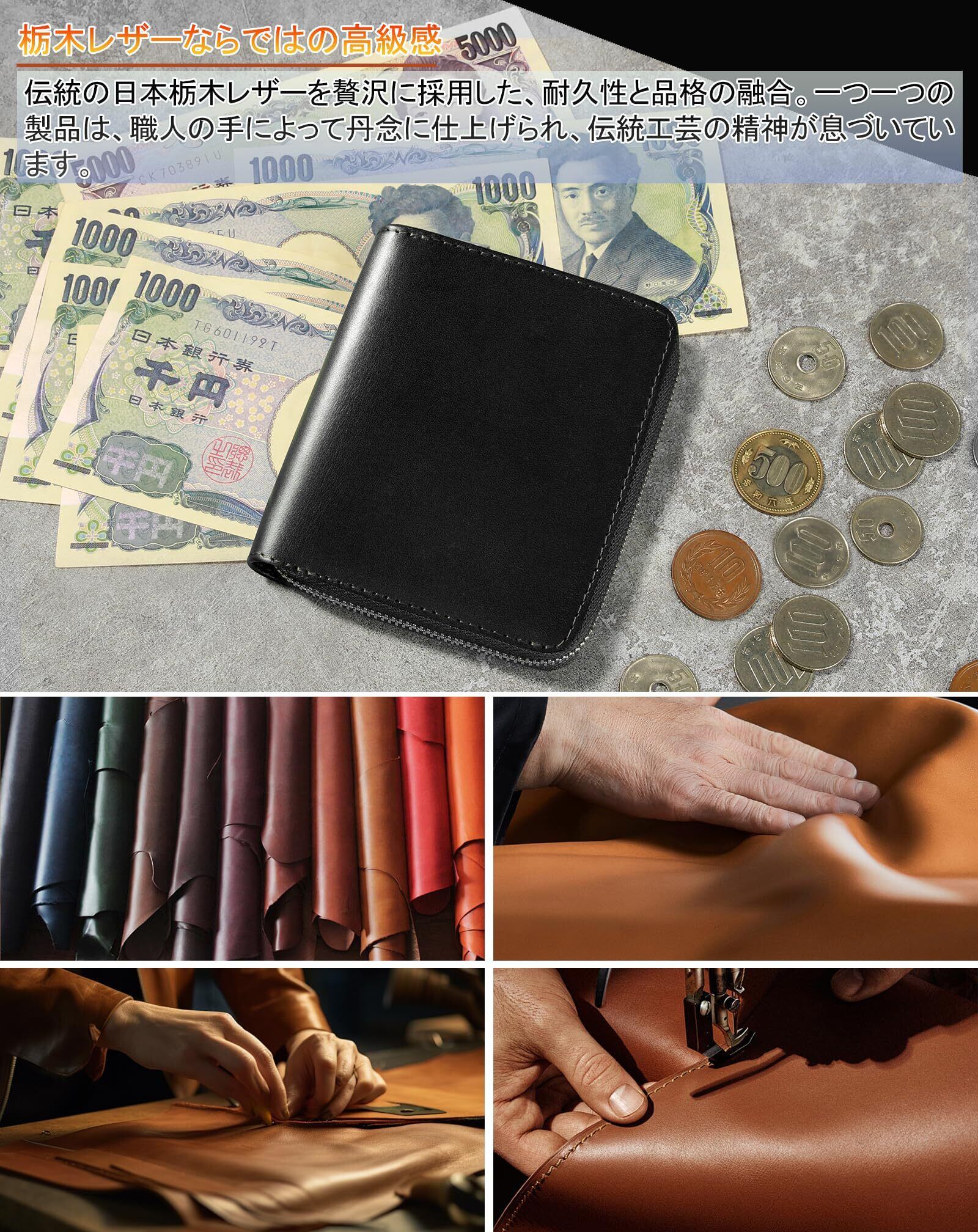 財布 メンズ 2つ折り 栃木レザー 二つ折り 薄型 コンパクト 本革 新設計の折り財布 YKK ファスナー BOX型小銭入れ スキミング 防止 ミニ 薄く 小さく かさ張らない 父の日(新モデル)