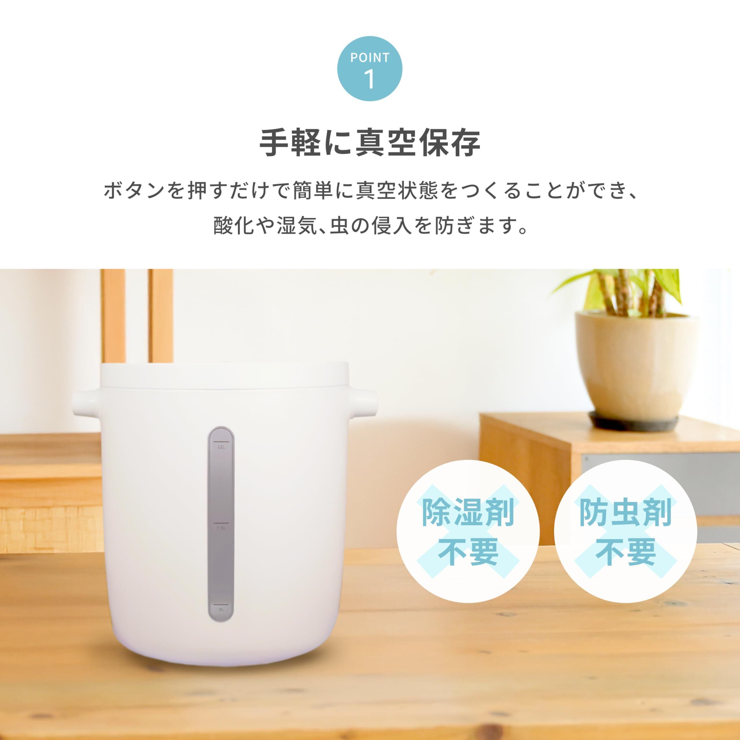 Pure Luxe ペットフードストッカー 2025年モデル 【国内メーカー】 真空保存容器 自動真空 保存容器 防虫 湿気防止 酸化防止 米びつ 12L 大容量 密閉容器 梅雨対策 フードストッカー 充電式 真空容器 自動空気抜き お米 ペットフード 猫犬フード PU-PEFOAA 計量カップ付