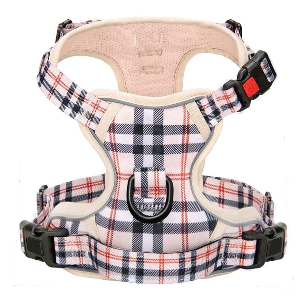 【在庫セール】【最新型 犬ハーネス】OGURIYA 引っ張り防止 犬用胴輪 調節可能 夜間反射 小型犬/中型犬/大型犬 通気性 メッシュ 簡単着脱 おしゃれ 安全 咳き込み軽減 しつけ用 訓練 歩行補助 散歩 可愛い(カーキチェック柄,M)