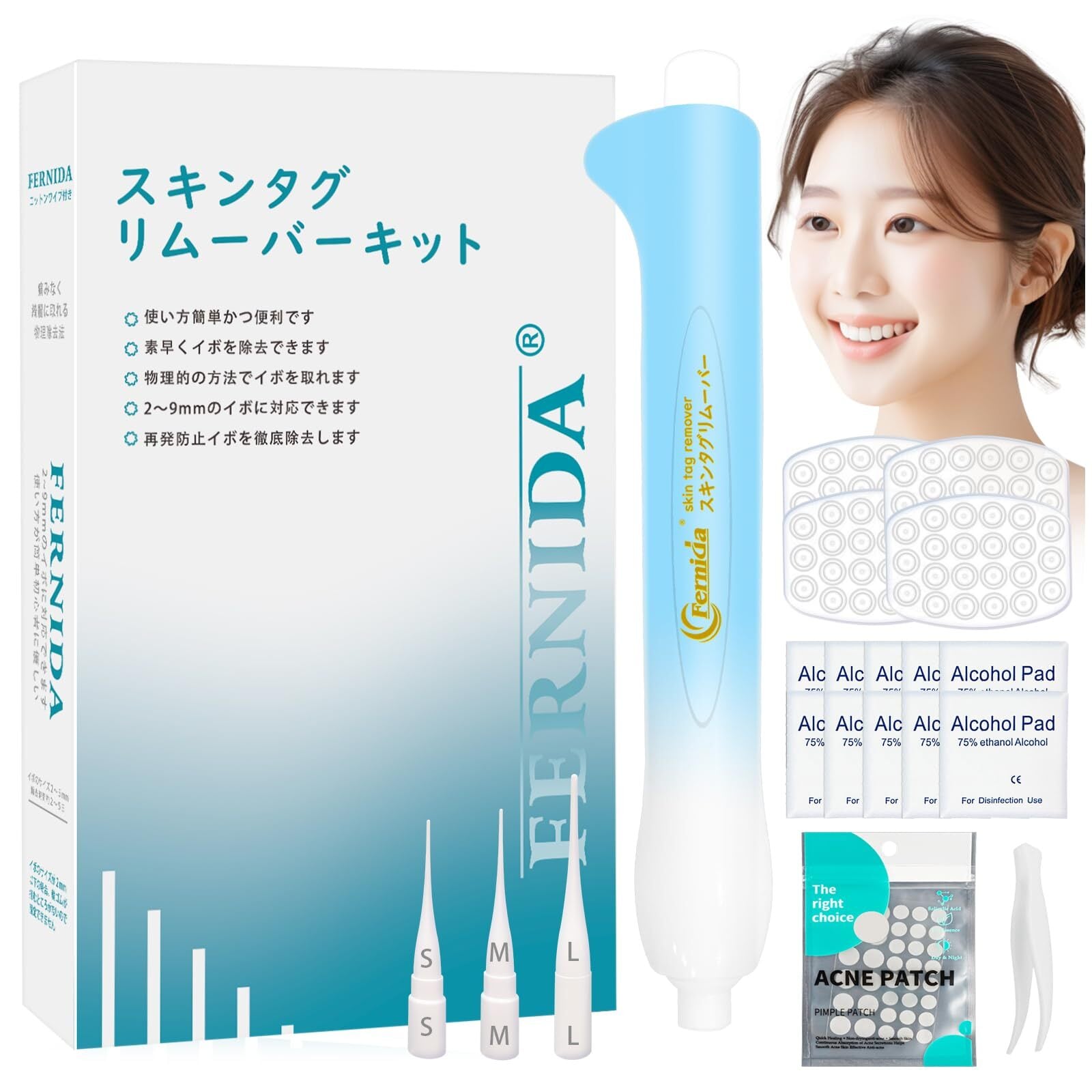 FERNIDA イボ取り いぼ除去 スギンタクリムーバーツール 2mm~10mm(限界) 自分で取り外す 88個バンドセット 3in1キット 顔 首 頭 脇 体 男女兼用 日本語取り扱い付き (ブルー)