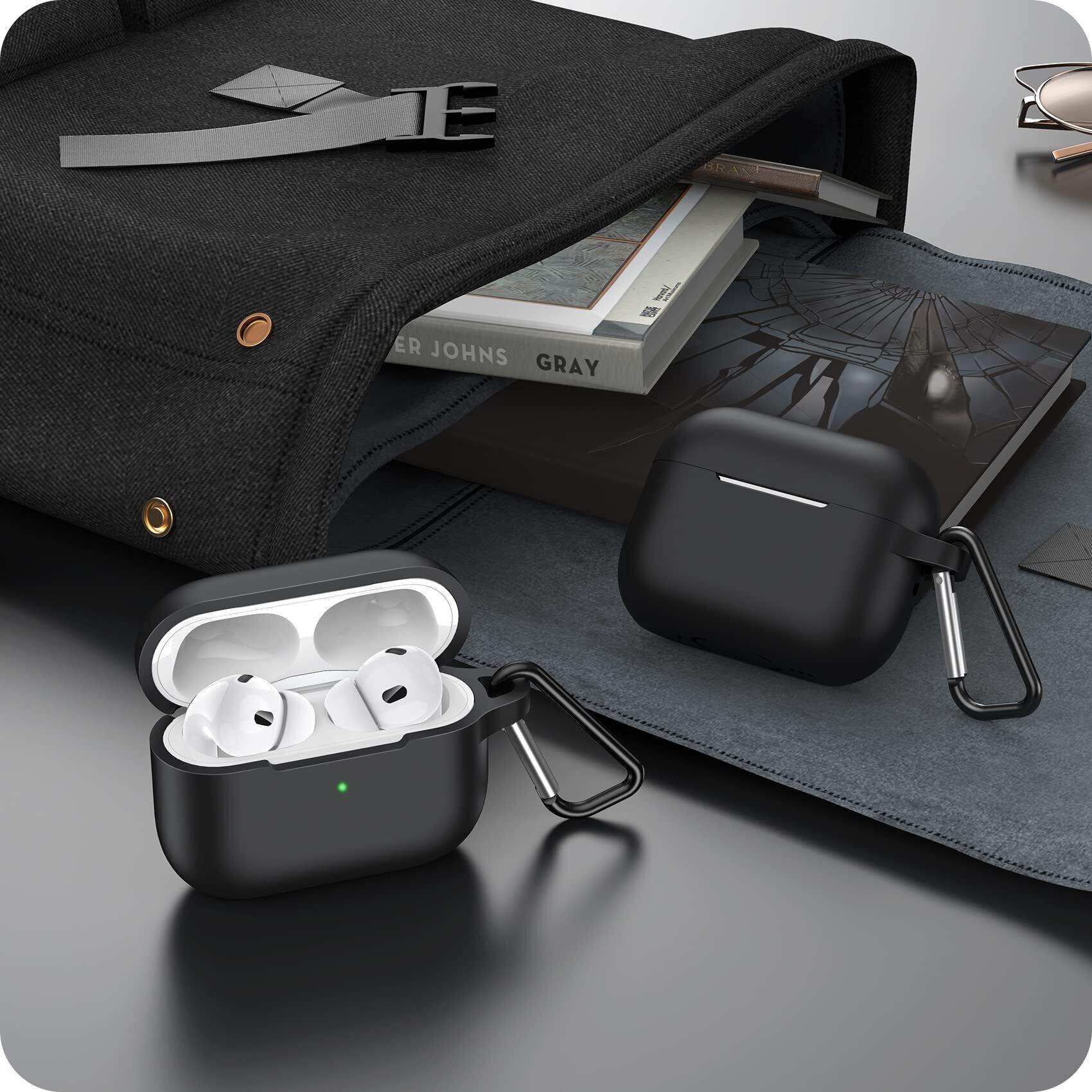 NIMASO ケース AirPods Pro 2 第2世代 専用 カバー エアーポッズ プロ 2世代 シリコン 保護 ケース カラビナ付き ワイヤレス充電対応 (ブラック) NEC22H562
