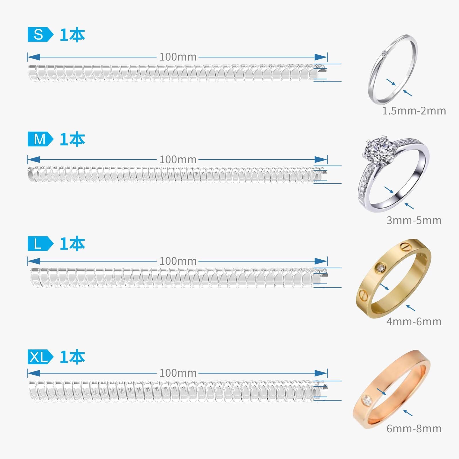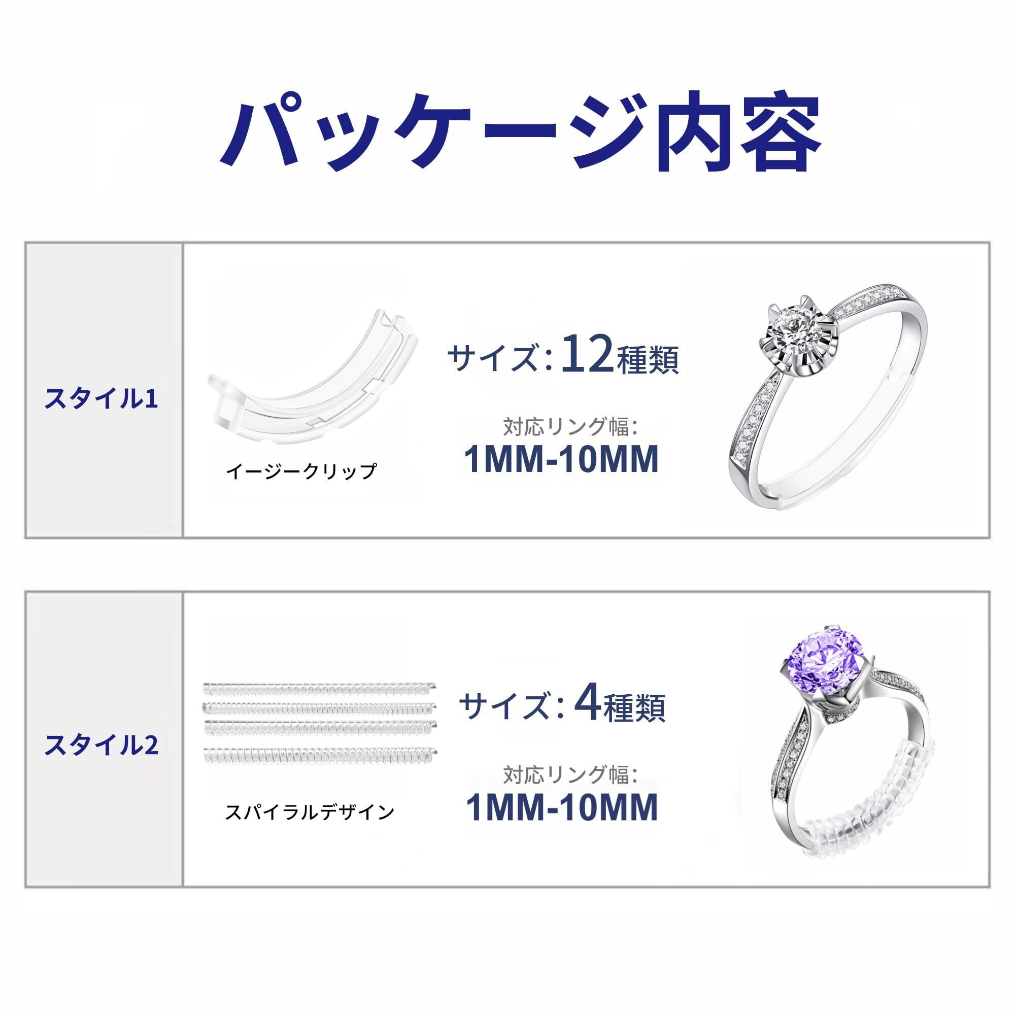 ほとんどの指輪にフィット – 当社のキットには2種類のアジャスター(イージークリップとコイル)が入っています。お客様のあらゆるニーズに対応し、指輪の種類や幅を問わず固定することができます。ご自身の指輪に合うものをお選びください。