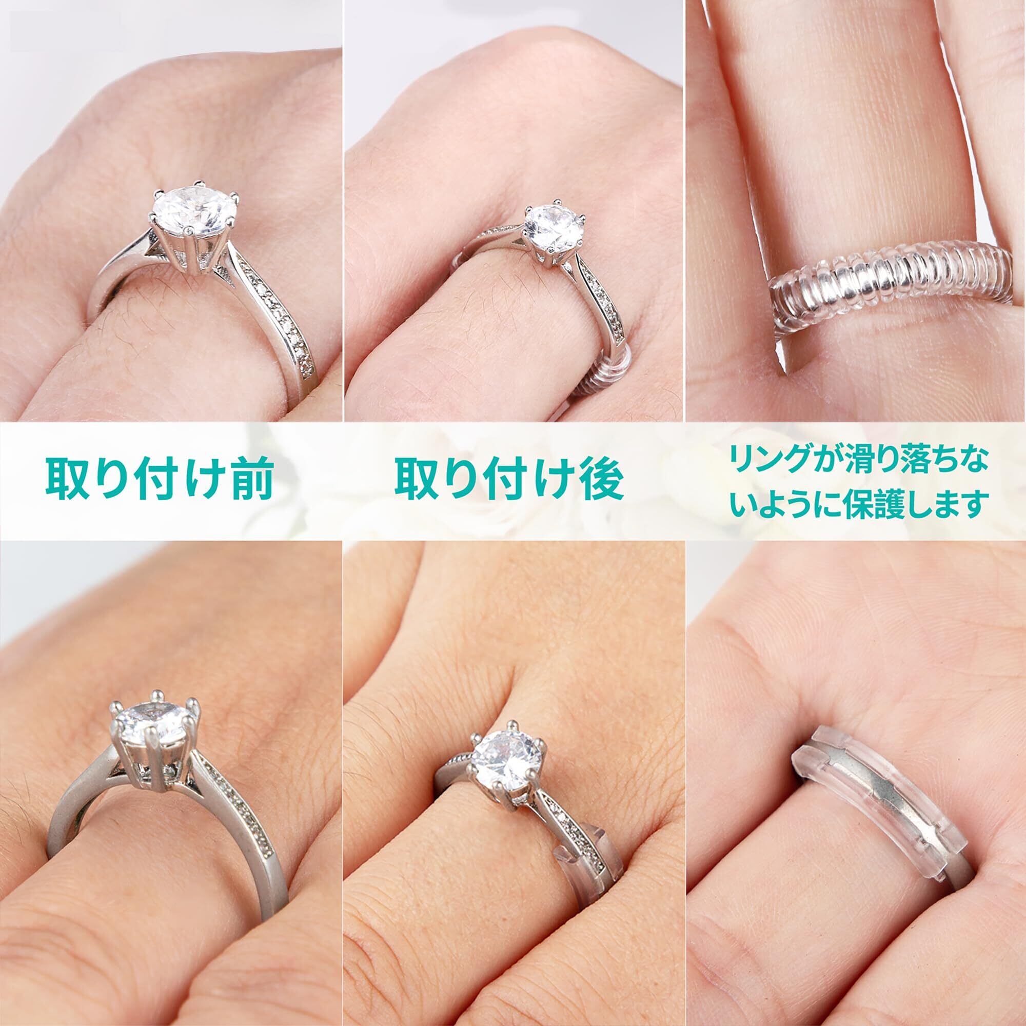 多用途 – この目立たないリングサイズリデューサーは、大きめの指輪のサイズを調整する商品です。結婚指輪や婚約指輪をなくす心配をしていた方、体重の減少により指輪のサイズが合わなくなってしまった方のお悩みを解決します。