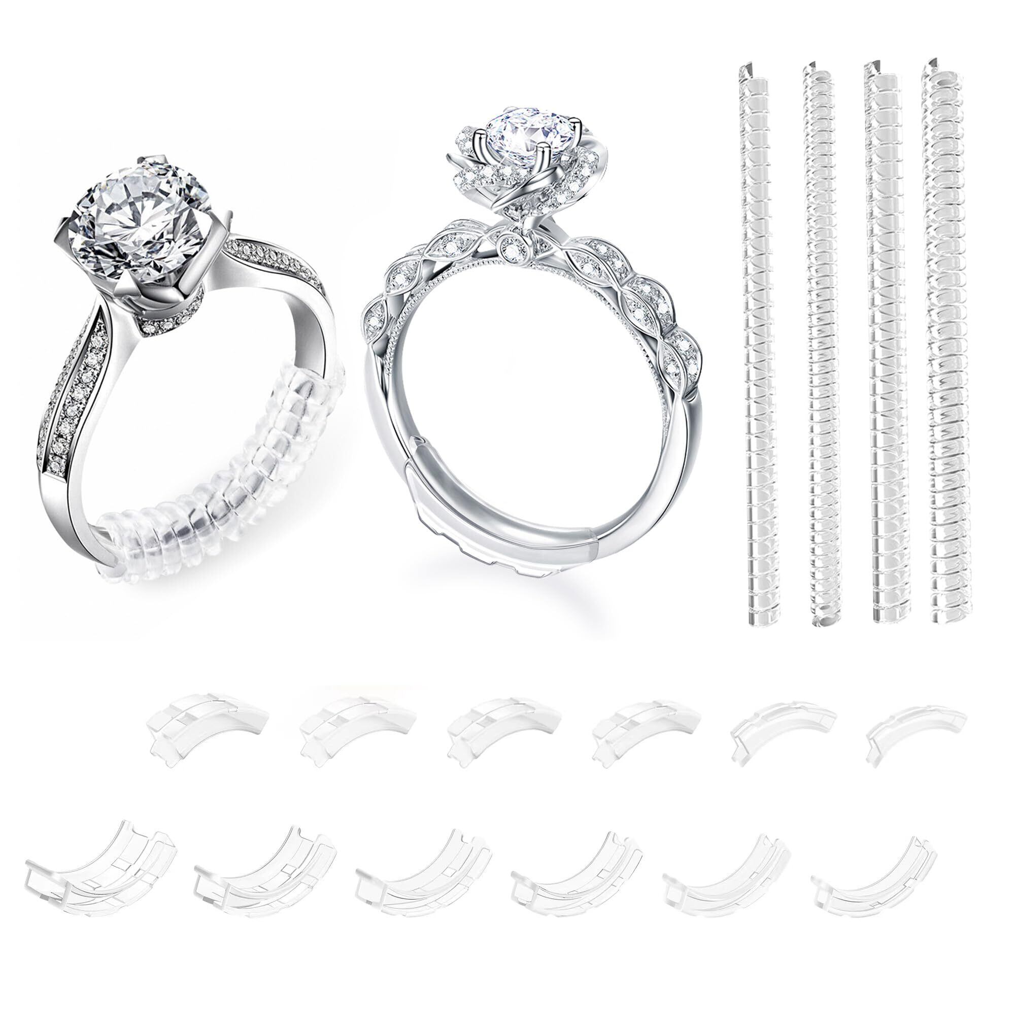 ゆるいリング用インビジブルリングサイズアジャスター(女性・男性用)- 12個のイージークリップリングアジャスターと4個のコイルアジャスター、ジュエリーリングサイズアダプター、リサイズスペーサー、ジュエリーガード