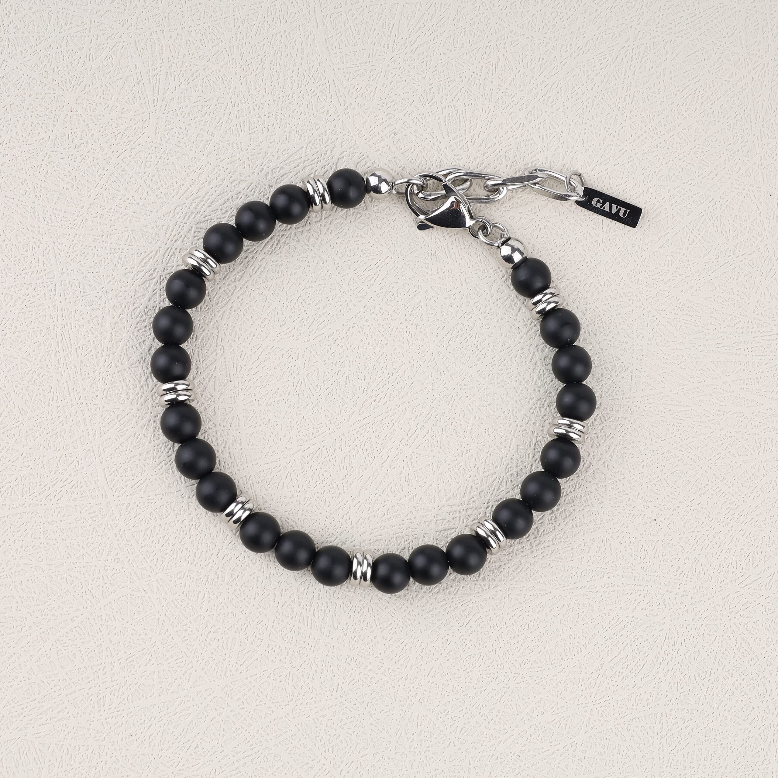 [ガーブ]GAVU マットオニキス ステンレス お守りパワーストーンブレスレット メンズ