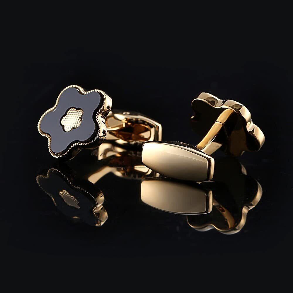Rockyu メンズ おしゃれ シルバー ブラック さくらカフス 和風 黒花 梅花 ステンレス ビジネス 紳士 レディース ファッション カフリンクス