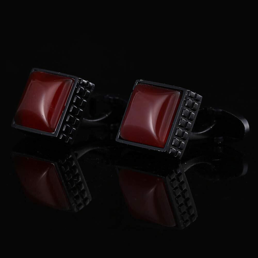 Rockyu カフスボタン メンズ おしゃれ ブラック レッド宝石 四角 正方形カフス 大粒カフスボタン ビジネス 出勤 就職祝い 誕生日 プレゼント カフリンクス ファッション アクセサリー