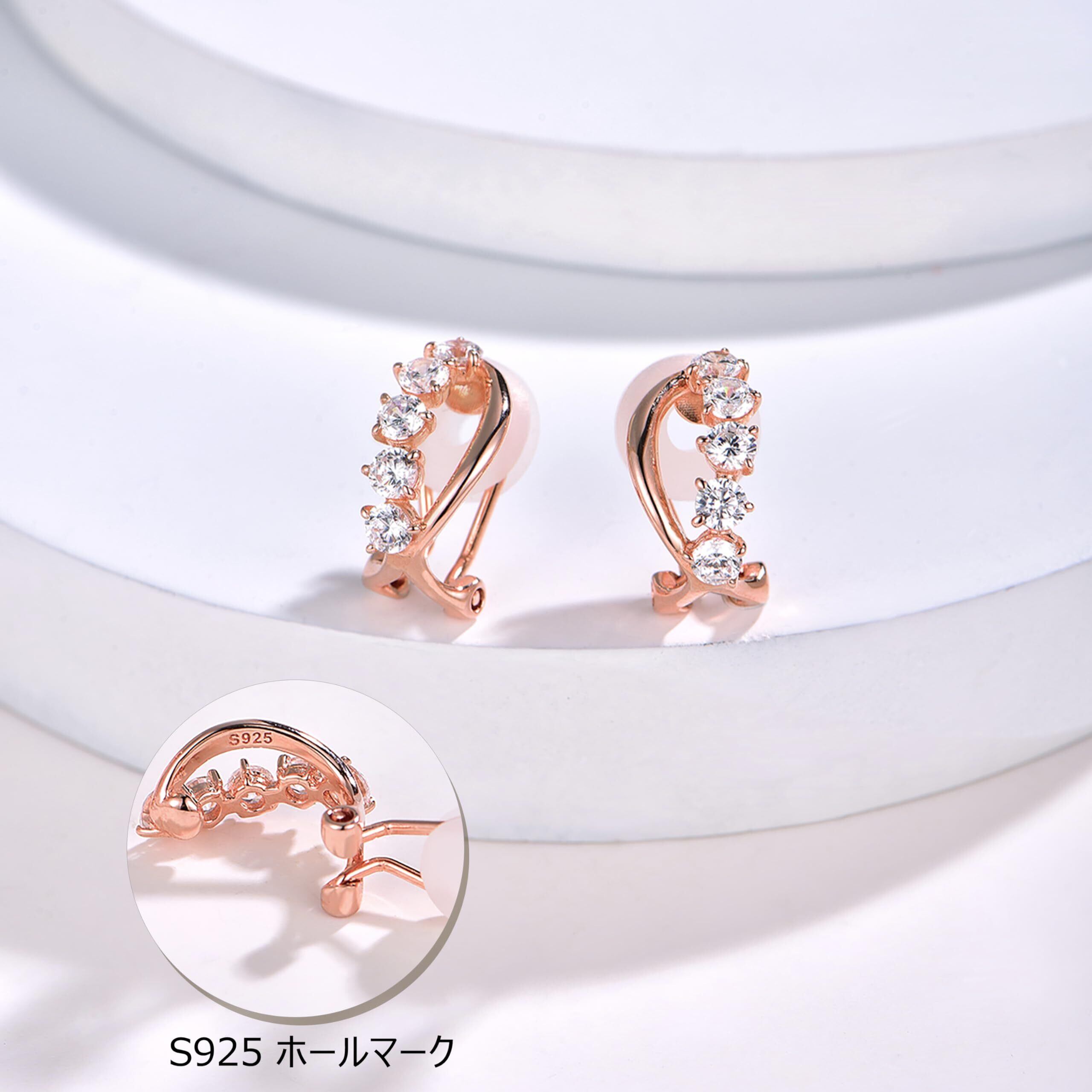 Immobird イヤリング ピンクゴールド レディース 人気 最高級ジルコニア 「優しい葉」金属アレルギー対応 痛くないイヤリング 葉の形 ノンホールピアス かわいい 記念日 ホワイトデー プレゼント