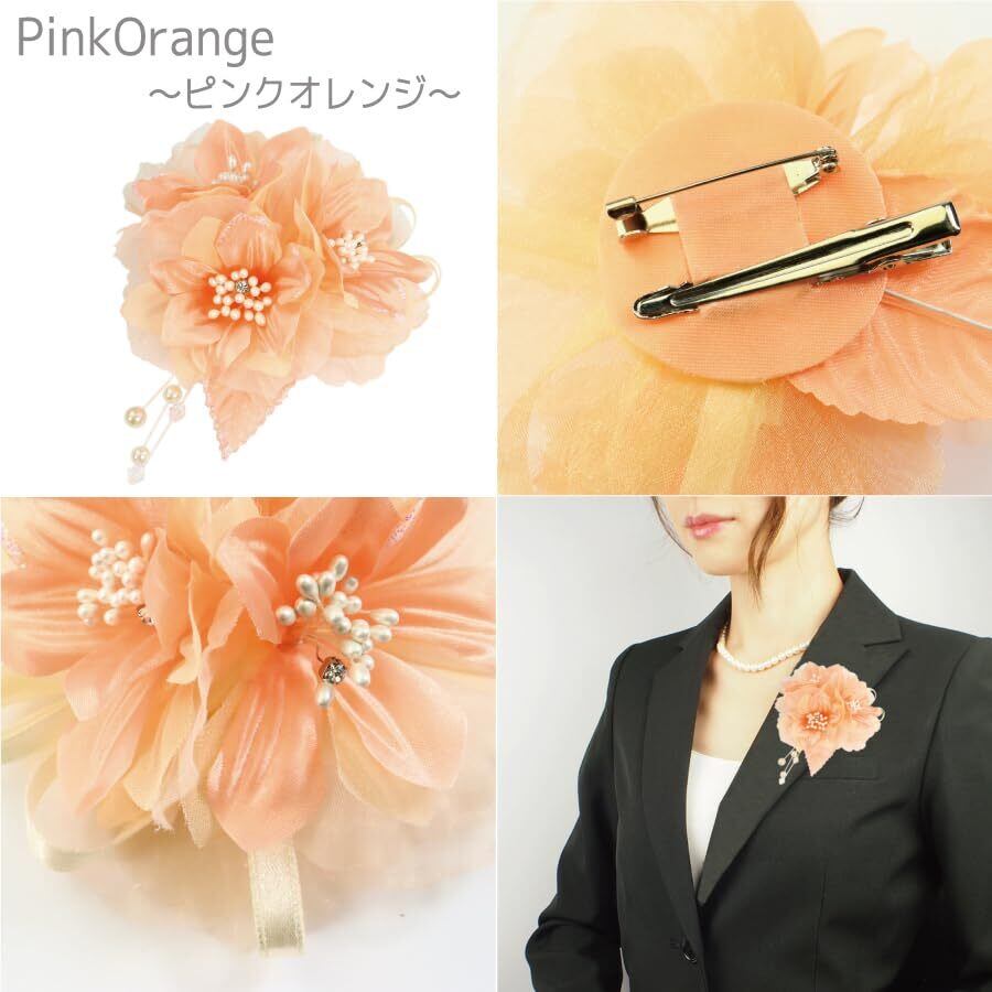 [クレインズコレクション] 手作り リリー コサージュ ブローチ ピン クリップ フォーマル シーン や エレガント な装いに (ピンクオレンジ)