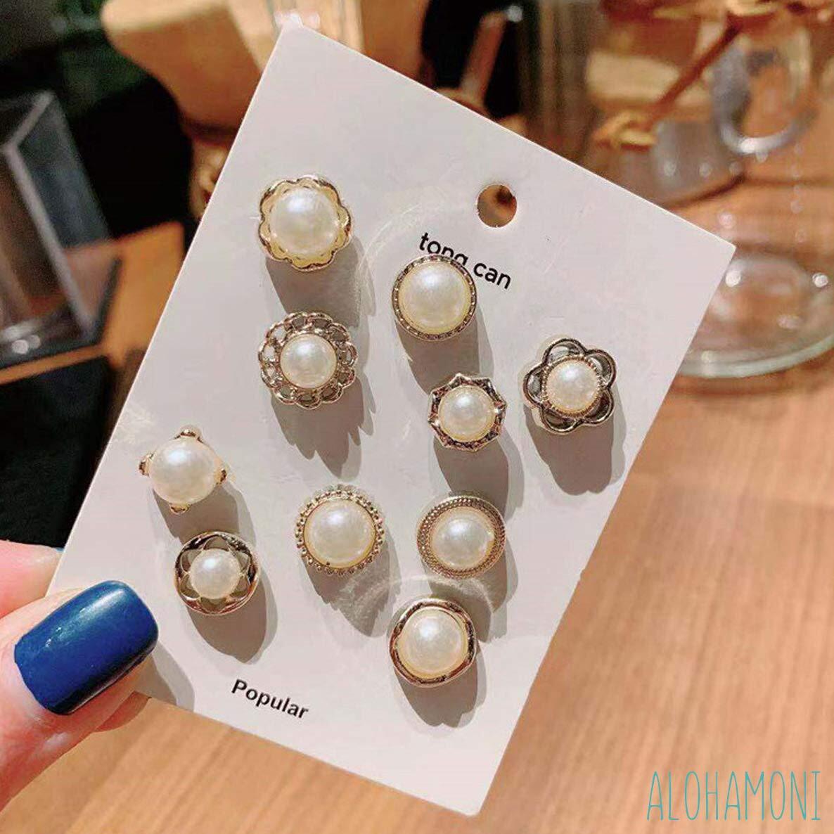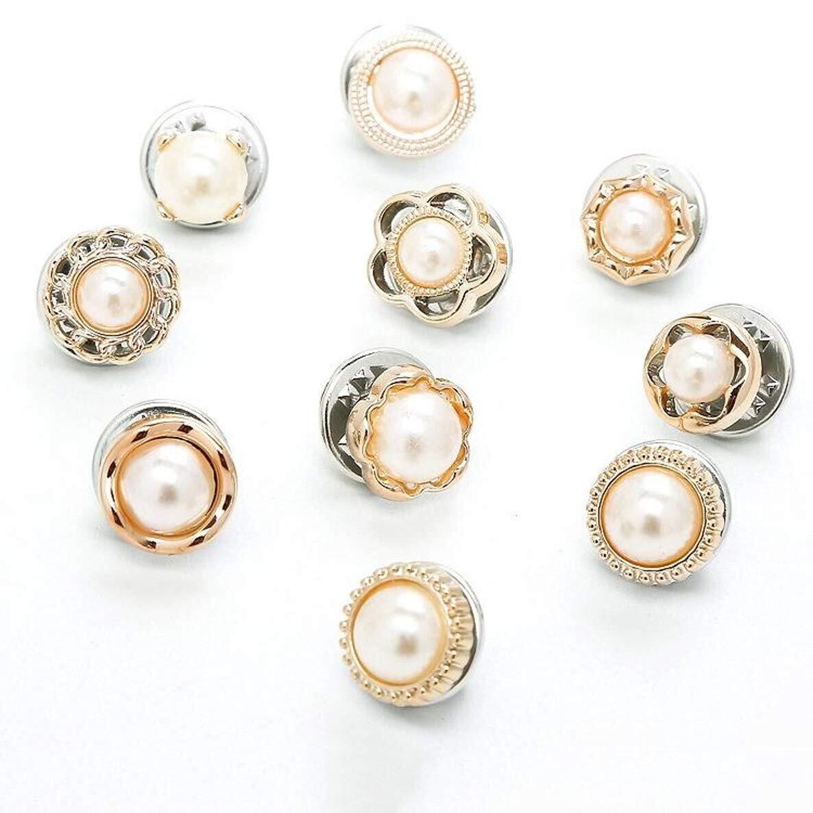 ALOHAMONI (アロハモニ) ブローチ タックピン 10個 セット ピンブローチ ピンバッジ ラペルピン ネクタイピン タイタック ハットピン ボタン 縫製不要 レディース メンズ キッズ ユニセックス (パール)