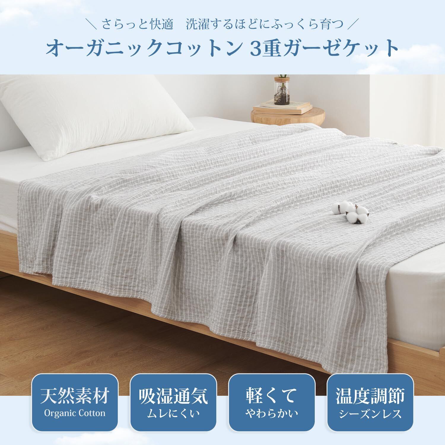 贅沢な柔らかさと厚さを感じていただけるガーゼを3枚重ねて、パイルがないので、普通のタオルケットでは摩擦が気になる敏感なお肌の方にもオススメです。