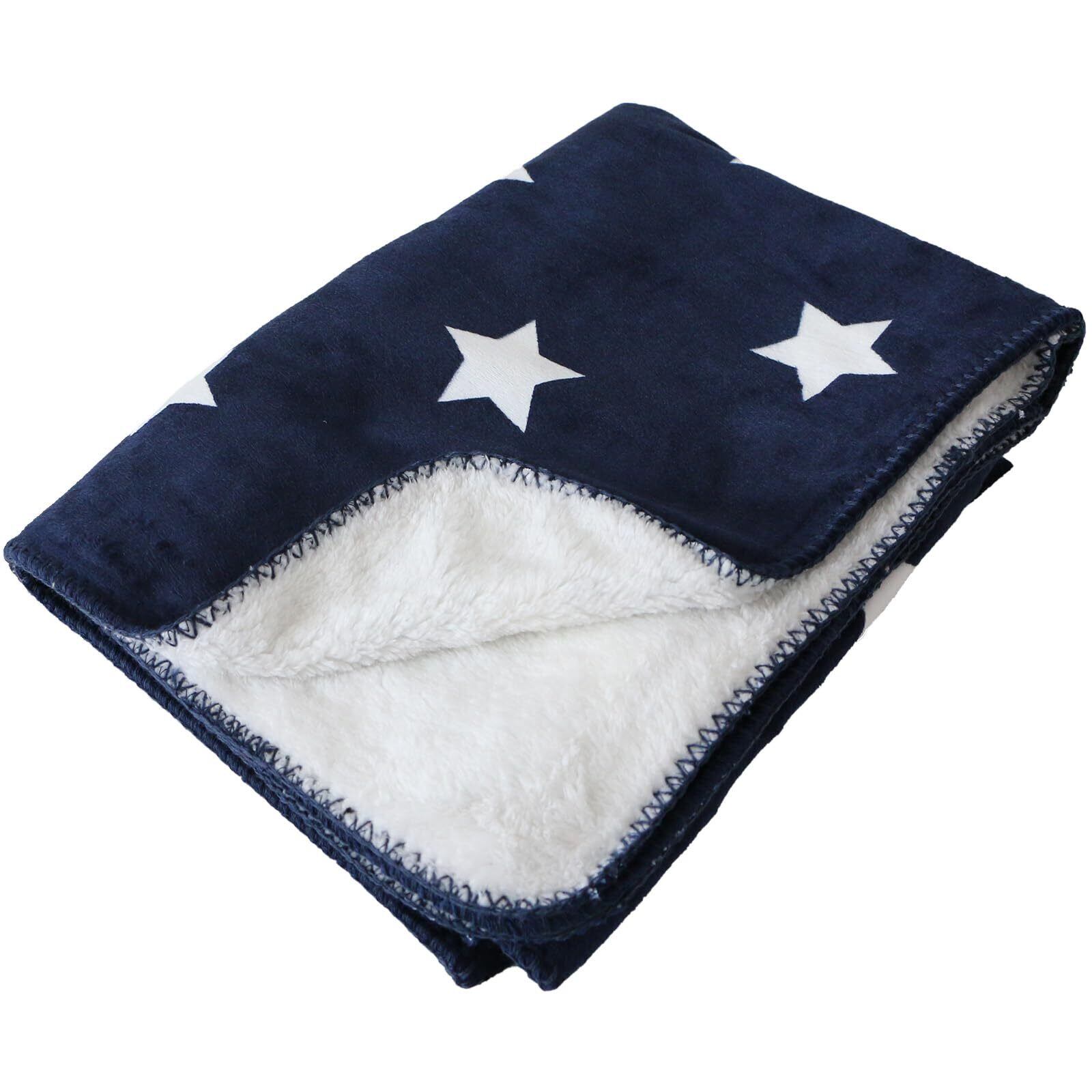 【在庫セール】[訳あり] imaa(アイマ) ブランケット ひざ掛け 70cm×100cm クォーターケット 真空圧縮パック ポリエステル 星柄-ネイビー