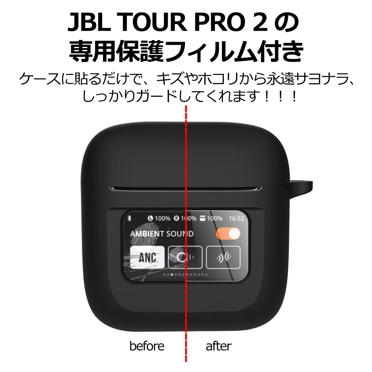 【在庫セール】TALENANA For JBL TOUR PRO 2ケースカバー JBL TOUR PRO 2 カバー 【フィルム*3 付き】シリコン製 全面保護 落下防止 キズ防止 耐衝撃 装着充電可能 軽量小型 カラビナ付き(ブラック)