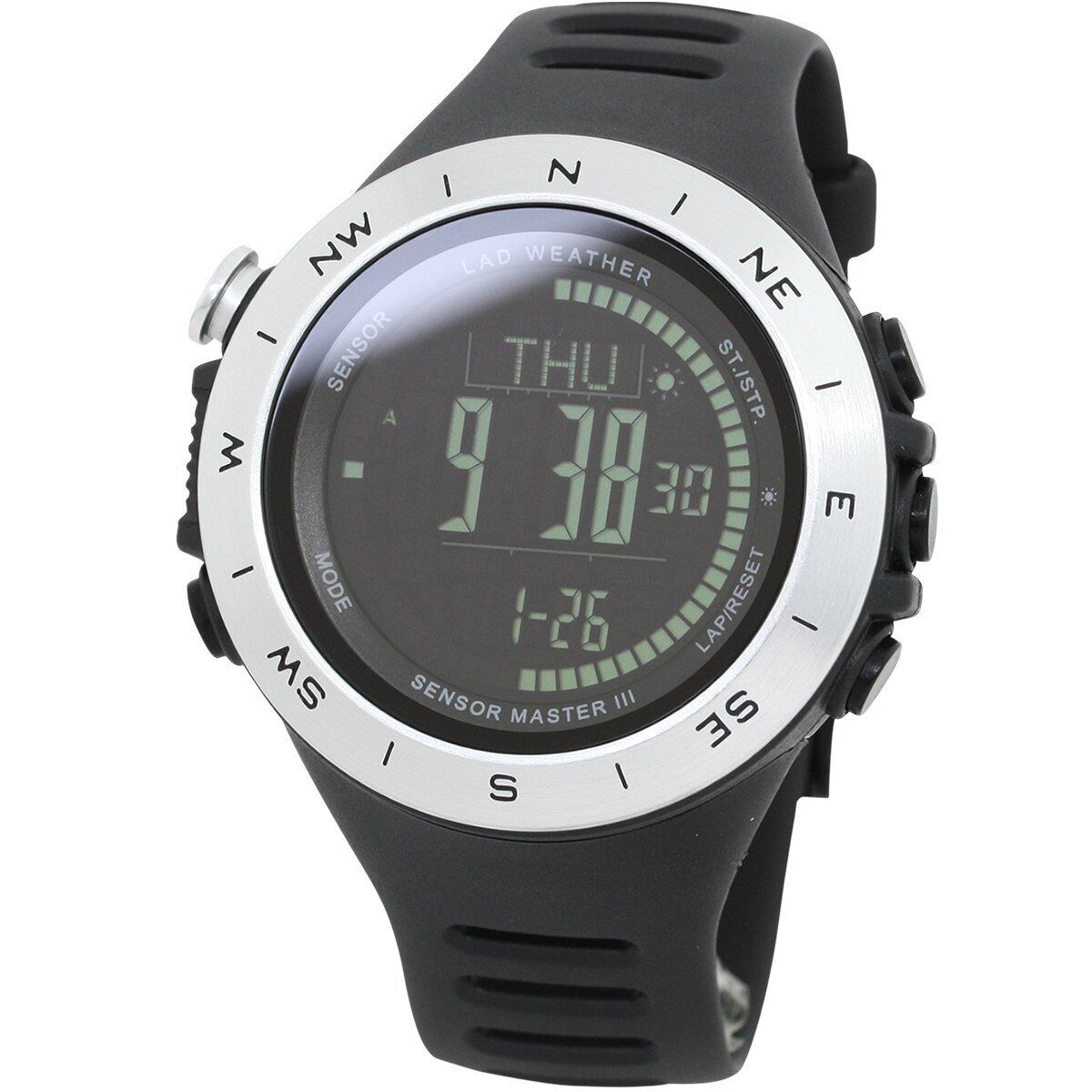 【新着商品】[ラドウェザー]デジタル時計 温度計 歩数計 100m 防水時計 (シルバー反転)