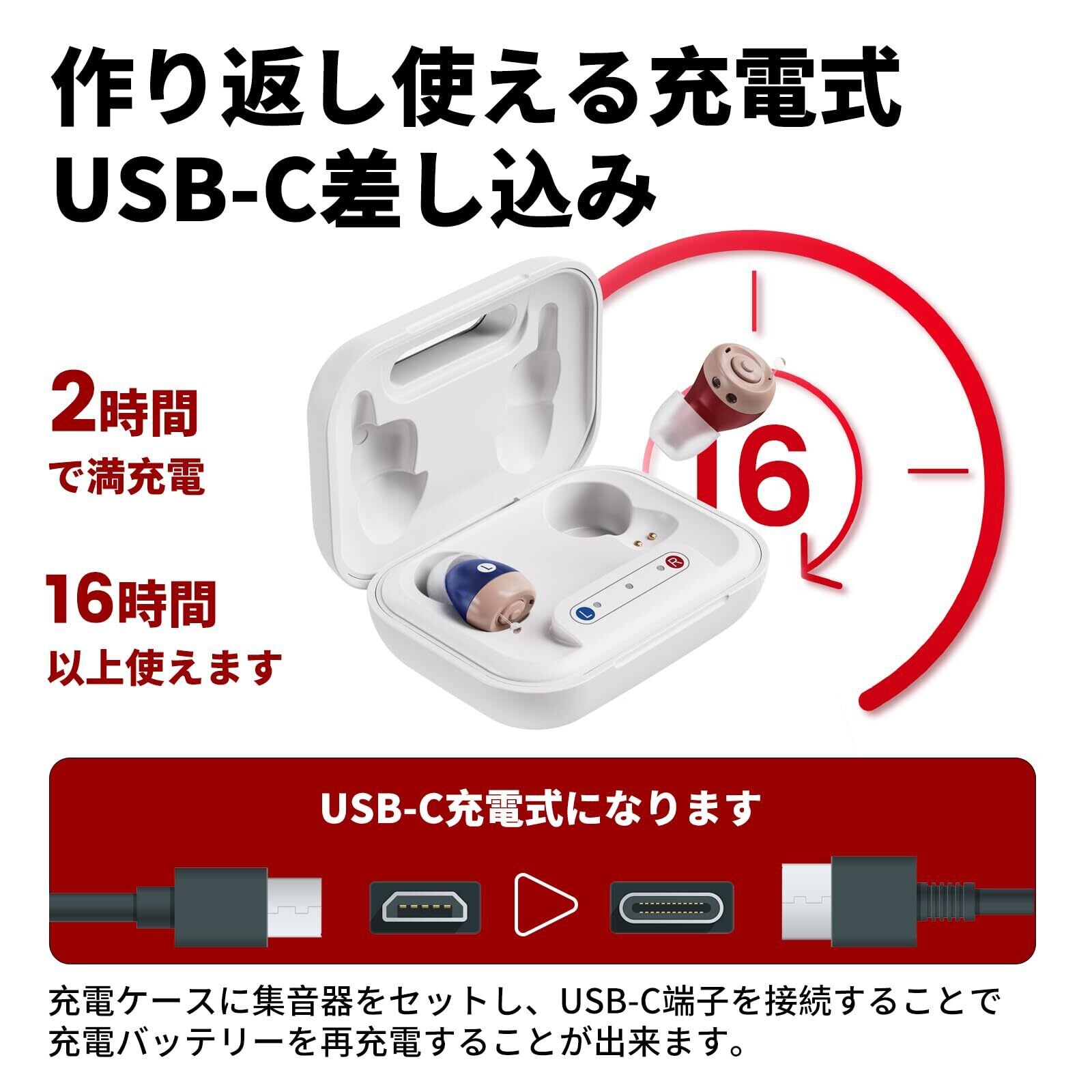 便利なUSB-C充電&携帯ケース:付属のコンパクト充電ケース(USB-C対応)で、外出先でも簡単充電。最大連続16時間使用可能。旅行やお出かけに最適な集音器です。