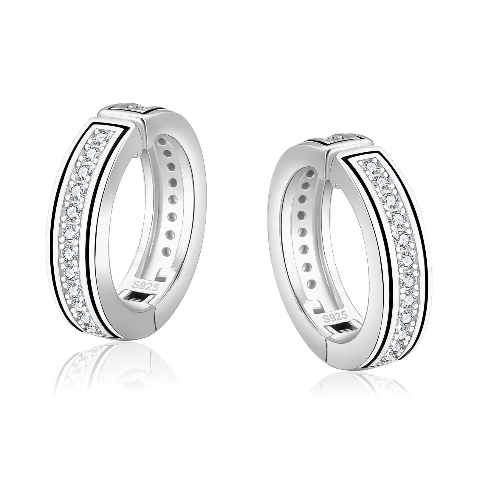 【耳元を華やかに彩る】高品質なCZダイヤをセットした、エタニティタイプのフープ型イヤリング。表面に埋め込まれた5Aランクのジルコニアが輝く、華やかにも耳元を彩ります。存在感がありながらシンプルなデザインでどんなスタイルにも相性抜群なアイテムです。