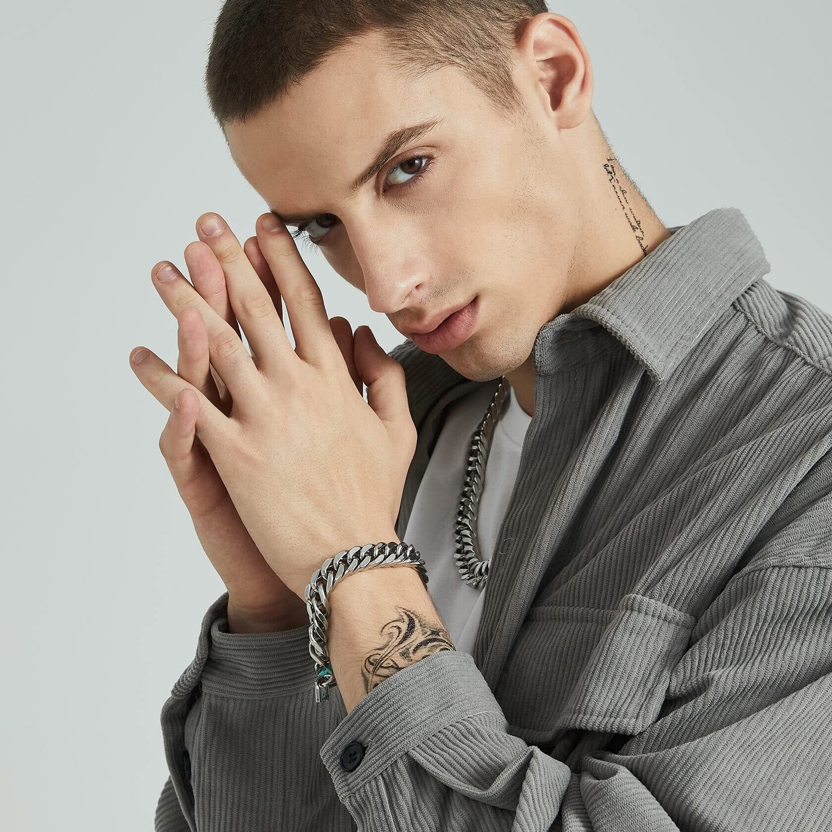 [ChainsHouse] ブレスレット メンズ サージカルステンレス 喜平チェーン 金属アレルギー対応 つけっぱなし 中折れ式留め