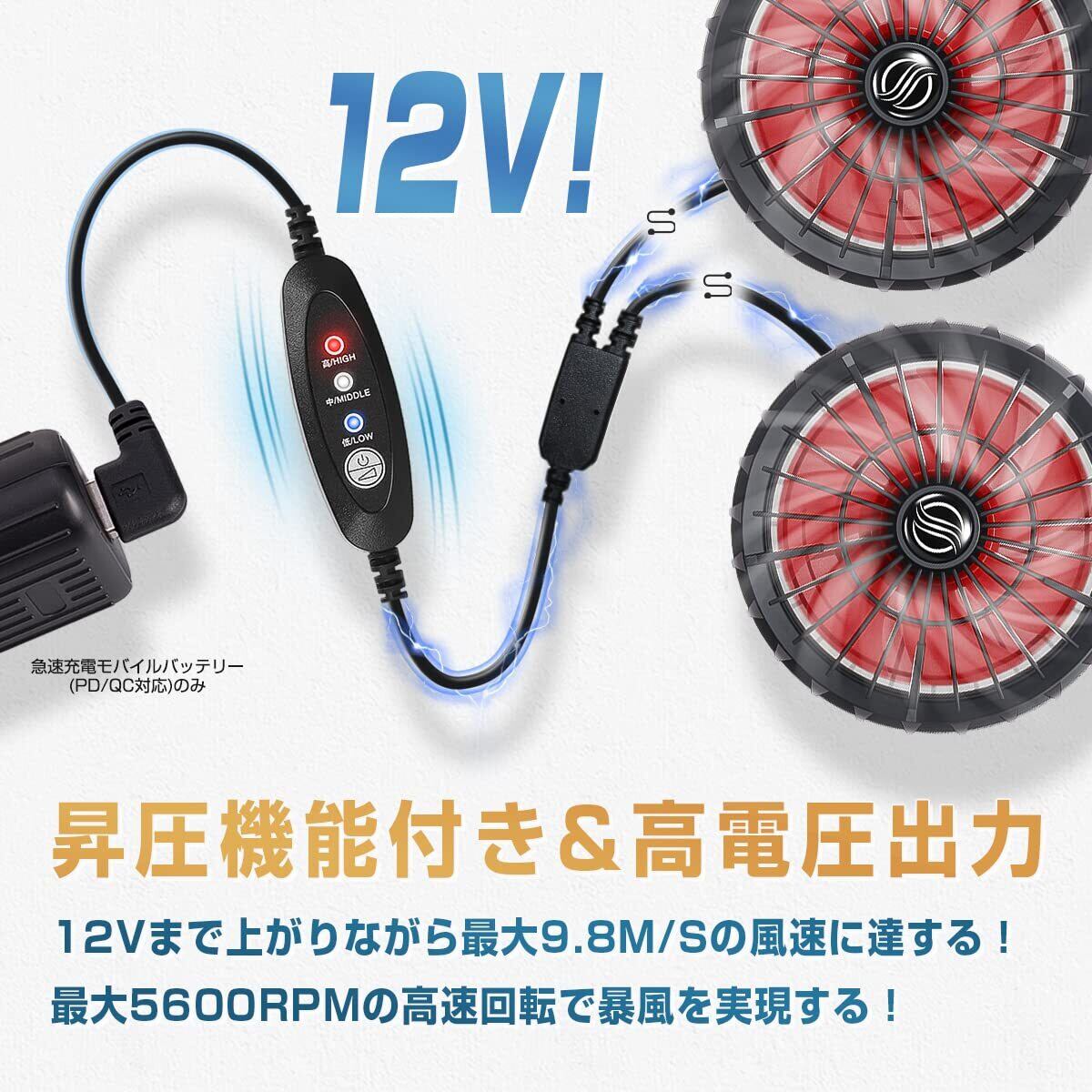 作業服ファンユニット 12V ブラシレスモーター 昇圧ファン 高電圧出力 新登場 USBタイプ 3段階の風力 低騒音 省エネ 取り外し可能 夏用 ファンセット