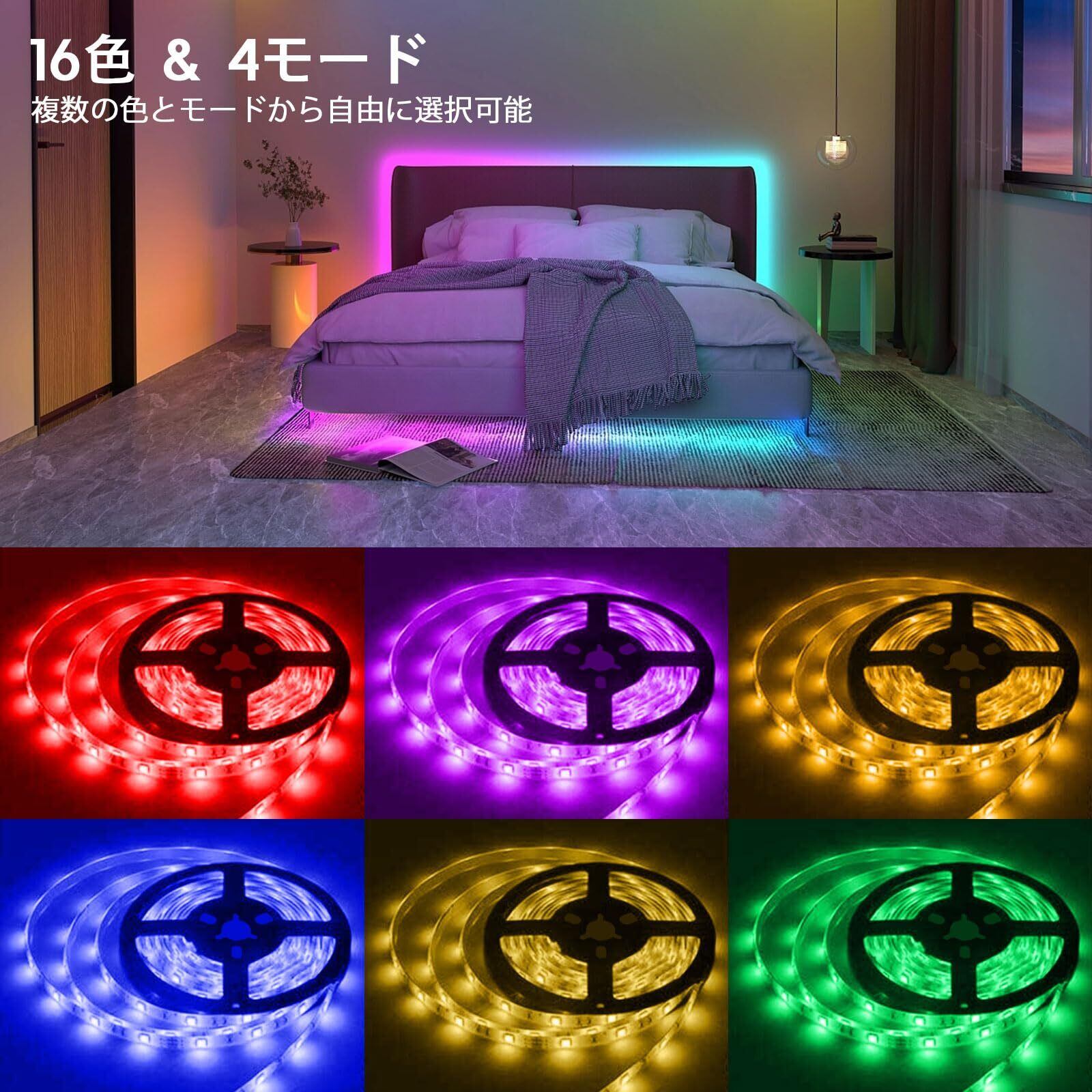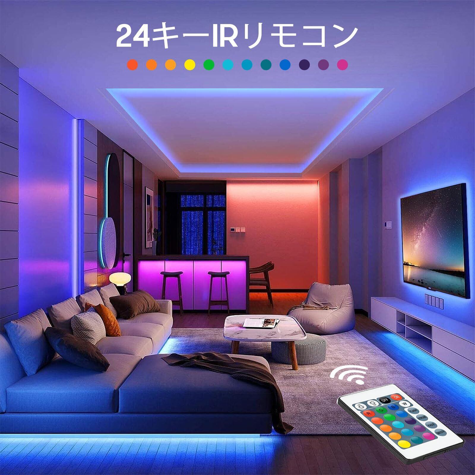 リモコン操作:24ボタンのリモコンを使用して、16色のRGBカラー、明るさ、4種類のダイナミックモードを調整できます。また、モードの速度調整も可能で、理想的な雰囲気を演出できます。室内照明や車内装飾、クリスマスやパーティーなどのイベントに最適です。※ 赤外線リモコンを使用する際は、ストリップの受信部に向けて操作してください。
