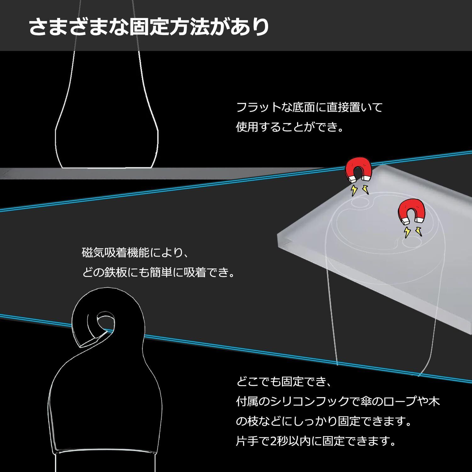 【優れた品質】①外殻には高い韧性を持つ透明なPC材料を使用し、内部部品を効果的に保護できます。耐衝撃設計により、高さ5〜10メートルから落下しても破損することはありません。②防水カバーを取り付けることで、水中でも正常に12時間稼働する防水機能を備えています。③ミニライト 内部には電気回路保護システムがあり、過充電、過放電、またはショートショートを防止して安全性を確保しています。