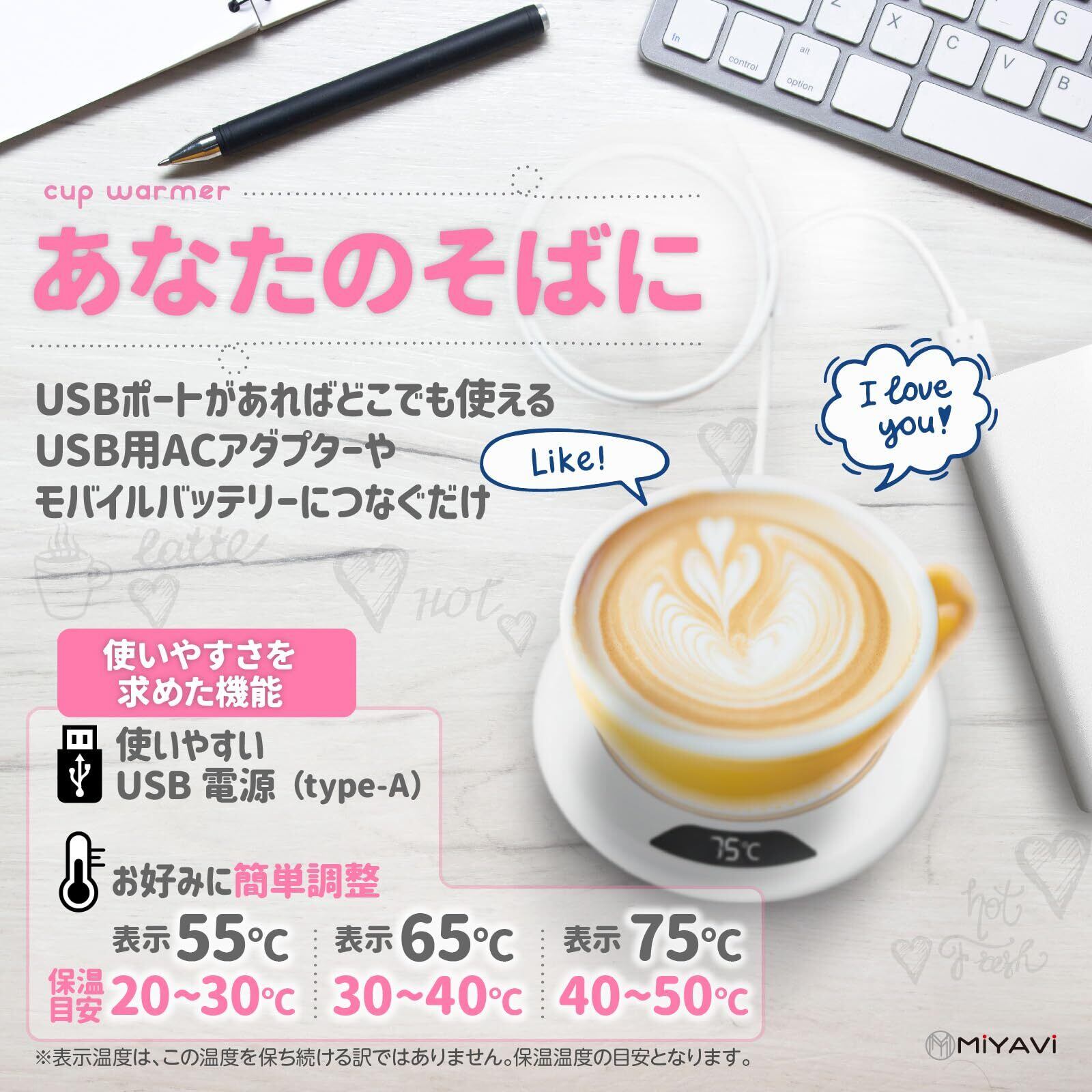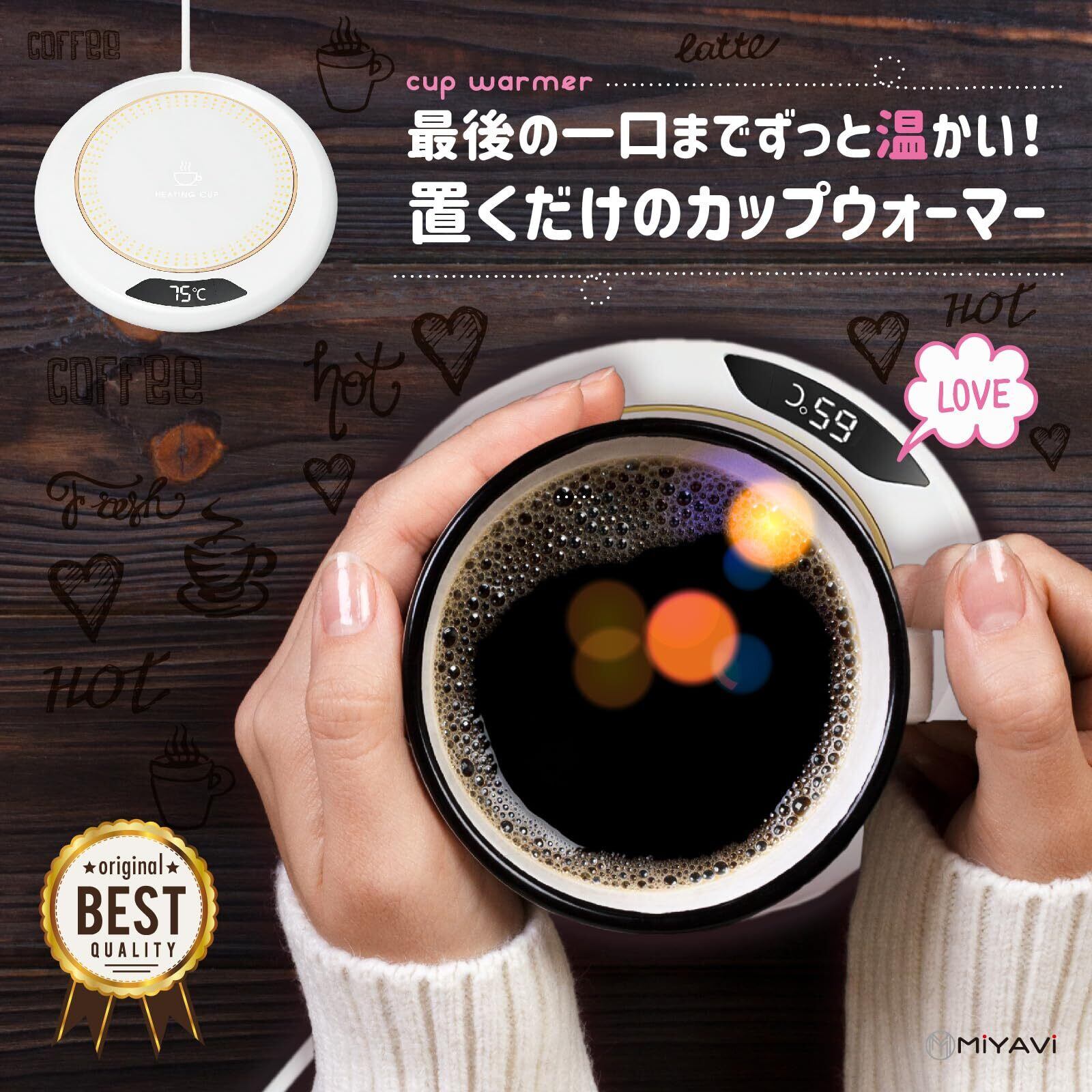 【2025年版】MY MiYAVi カップウォーマー コーヒーウォーマー 保温コースター USB 55℃~75℃3段階切り替え 8時間自動電源オフ機能 (ホワイト)