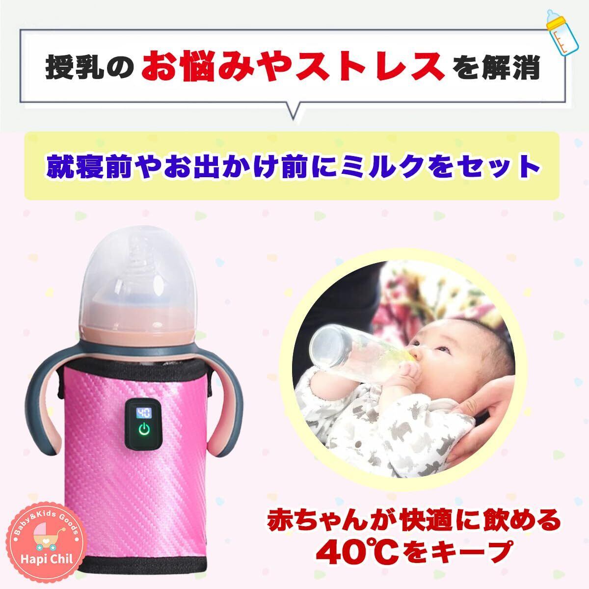 HapiChil 快適 ミルクウォーマー 持ち運び USB給電 デジタル温度調整 哺乳瓶ウォーマー 日本語説明書 付き (シルバーピンク)