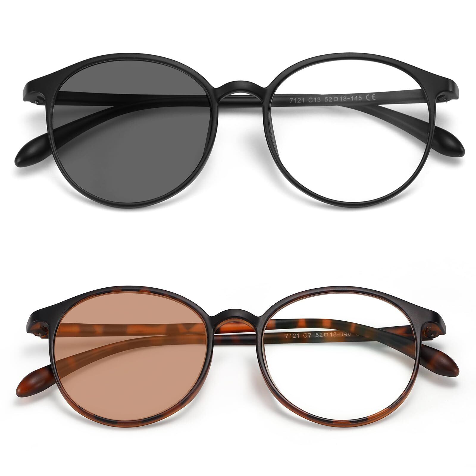 [Dollger] ブルーライトカットメガネ 調光メガネ 度なし 調光レンズ 屋外サングラス 室内透明メガネ 調光サングラス パソコンメガネ 超軽量13g 紫外線カット 丸めがね