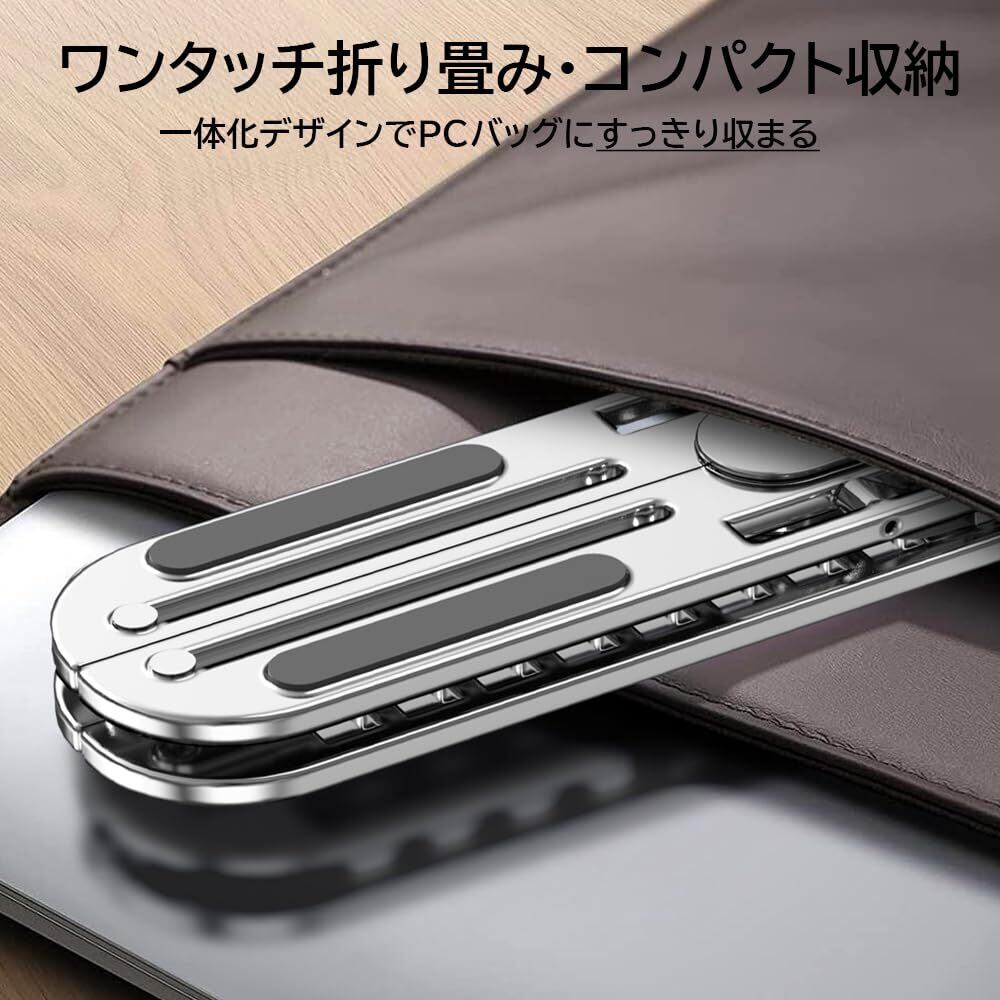 【10段階高さ調節&快適な視角調整】 ノートパソコンスタンドは、高さを3.5cm~15.5cmの10段階で自由に調節可能。さらに、傾斜角度を10°~45°の範囲で細かく調整できるため、最適な視角を簡単に見つけられます。姿勢の改善や肩こり・腰痛の軽減に効果的で、長時間の作業でも疲れにくい設計です。自宅やオフィスでの作業効率を向上させます。