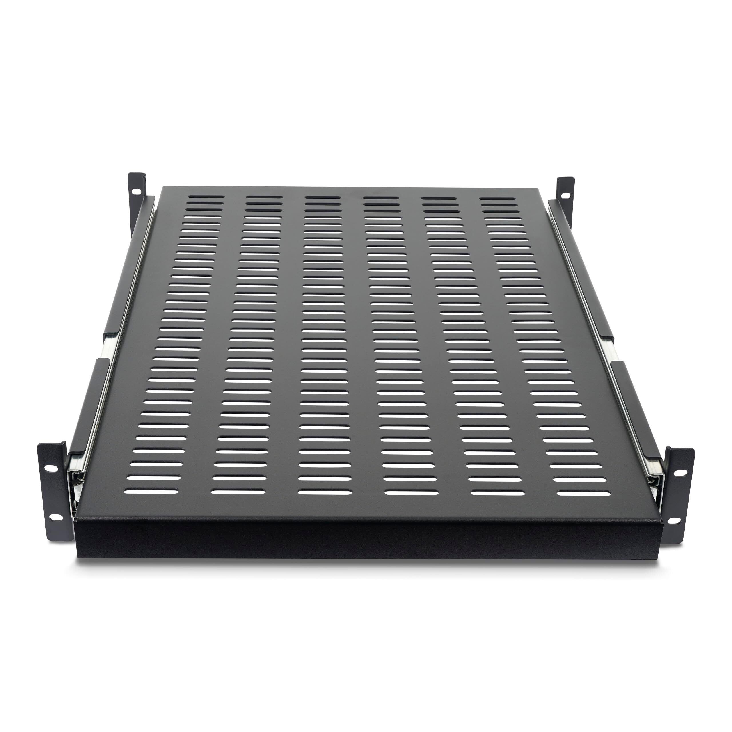 優れた機能性:IT / AV用アクセサリー収納用スペースの追加に理想的なスライド式キャビネット用棚板(奥行き50cm)。適切なエアフローを確保するための通気穴付き