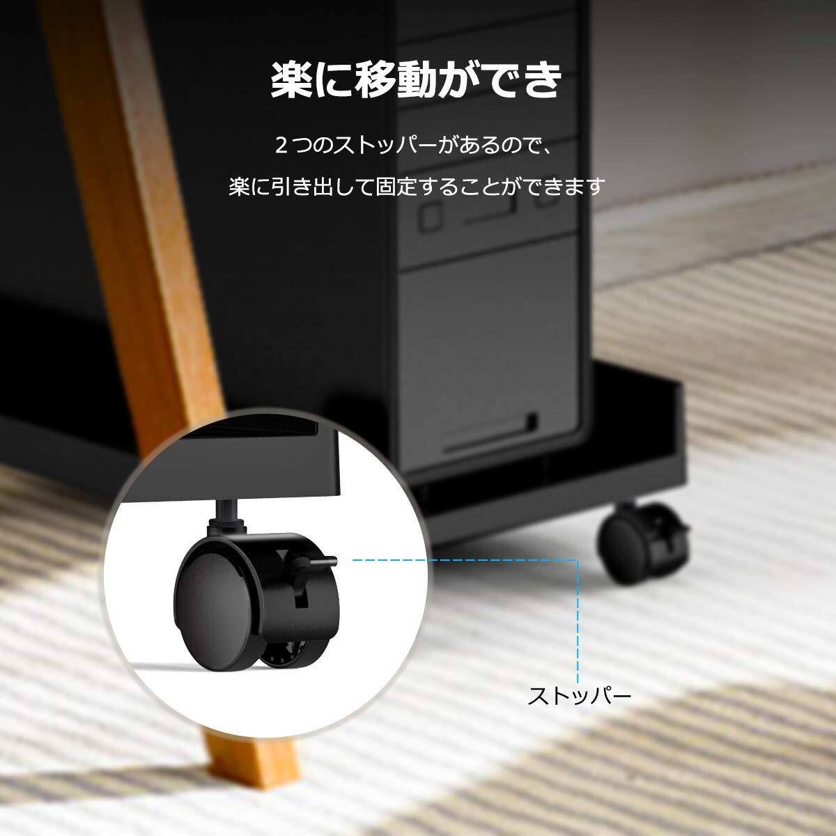 【良い便利性】4つのキャスター付きなので掃除やメンテナンスもスムーズな移動ができます。女性一人でも簡単に移動できるワゴンタイプのCPUスタンドです。そしてPC本体を床面に置く、デスクトップのために大量のスペースを節約します。