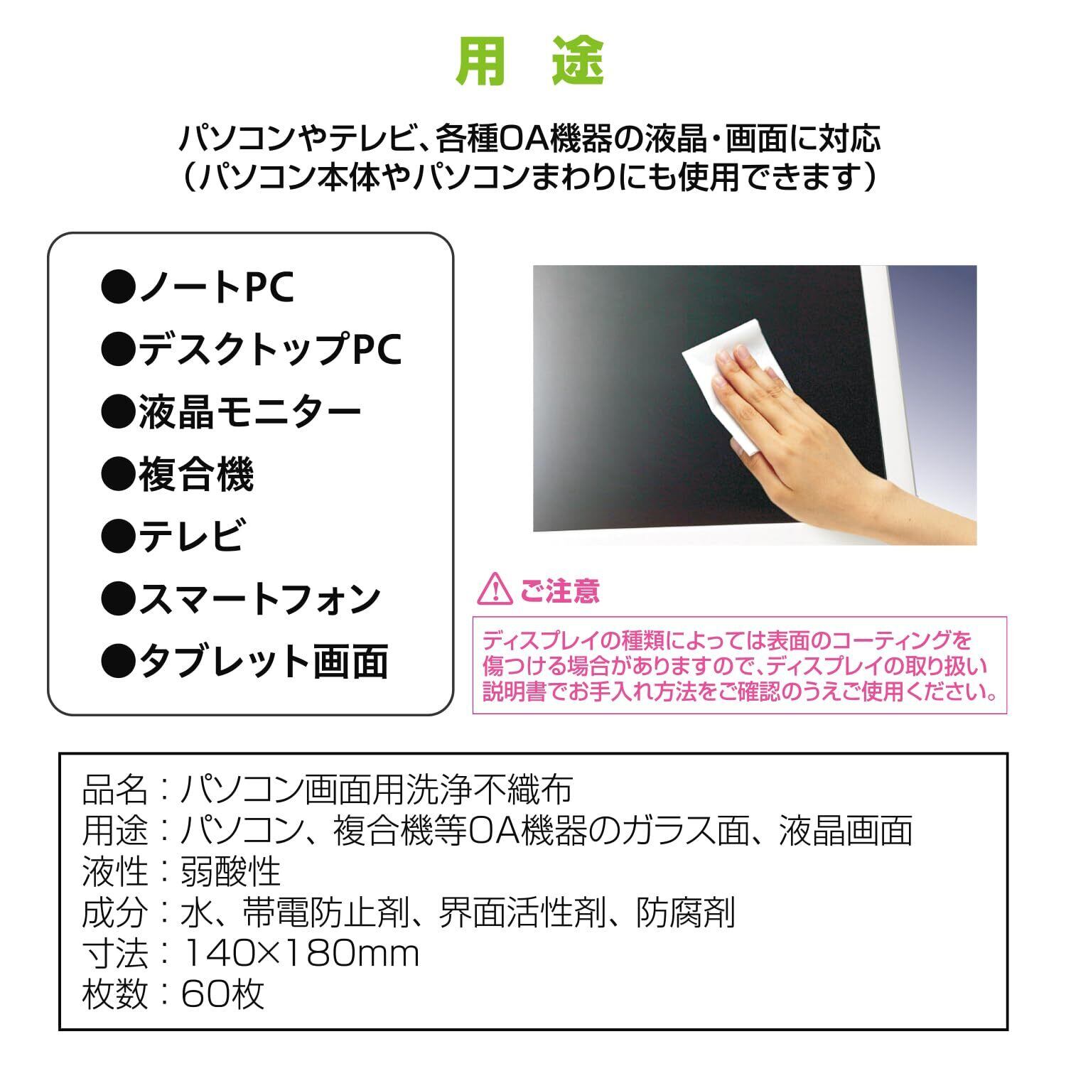 プラス 液晶用クリーナー ノンアルコール Mサイズボトル 本体 60枚入 OC-201S 68-825