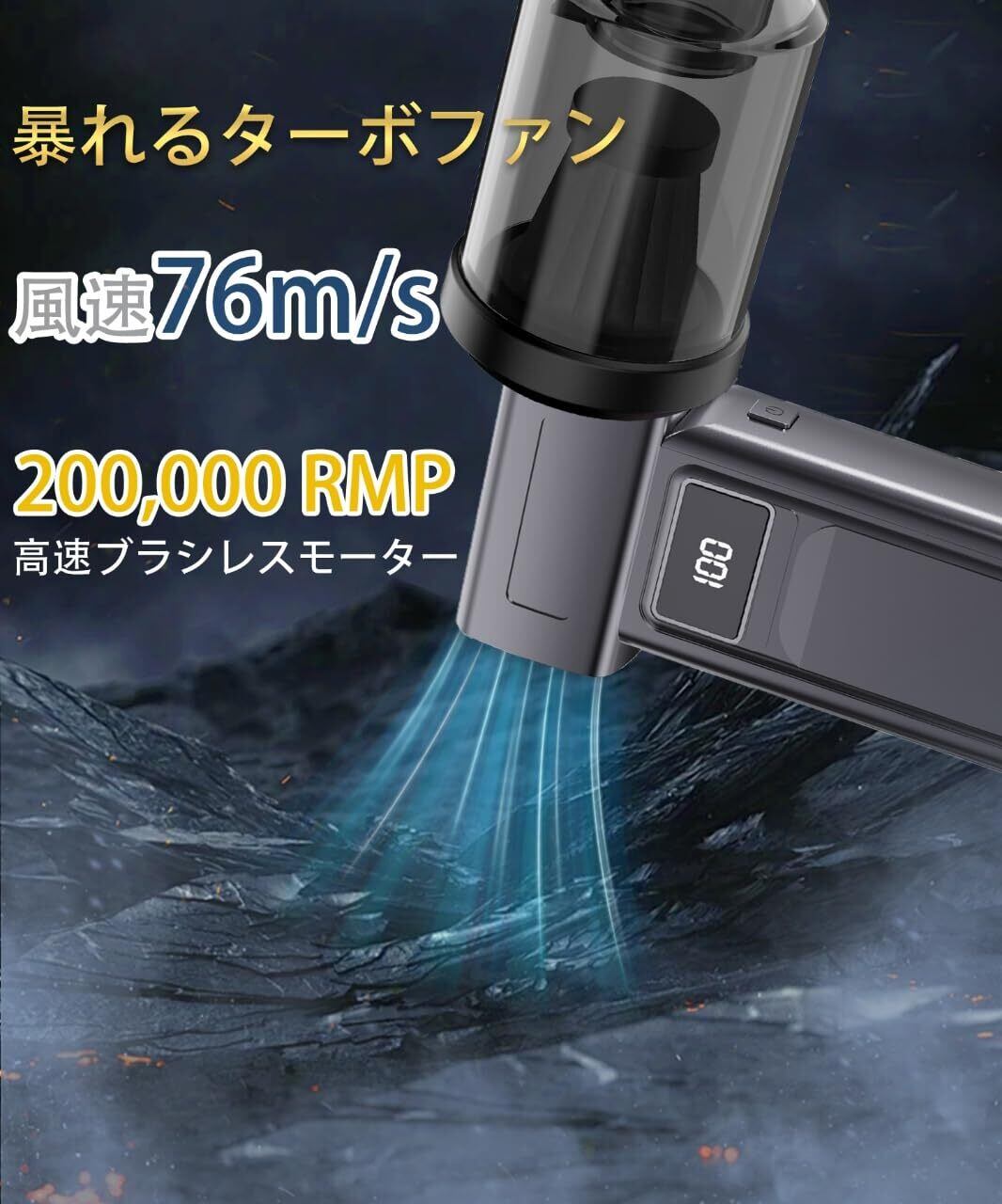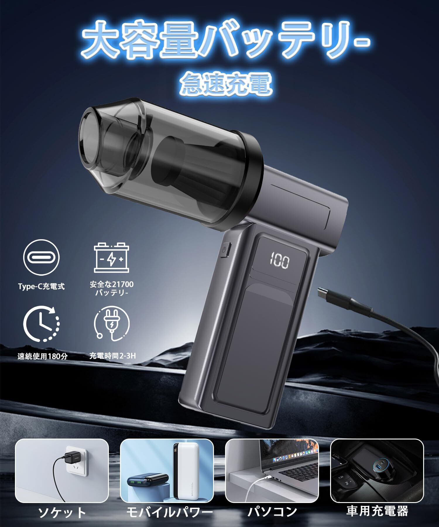【在庫処分】CCDBD エアダスター ブロワー 電動エアダスター ハンディ掃除機 超強力200000RMP高速回転 無段階風量調整 8000mAh 電動エアダスター Type-C充電式 小型 3種類ノズル付き PC掃除/キーボード/家具/車内/エアコン/洗車用 収納ボックス付き 日本語取扱説明書付き