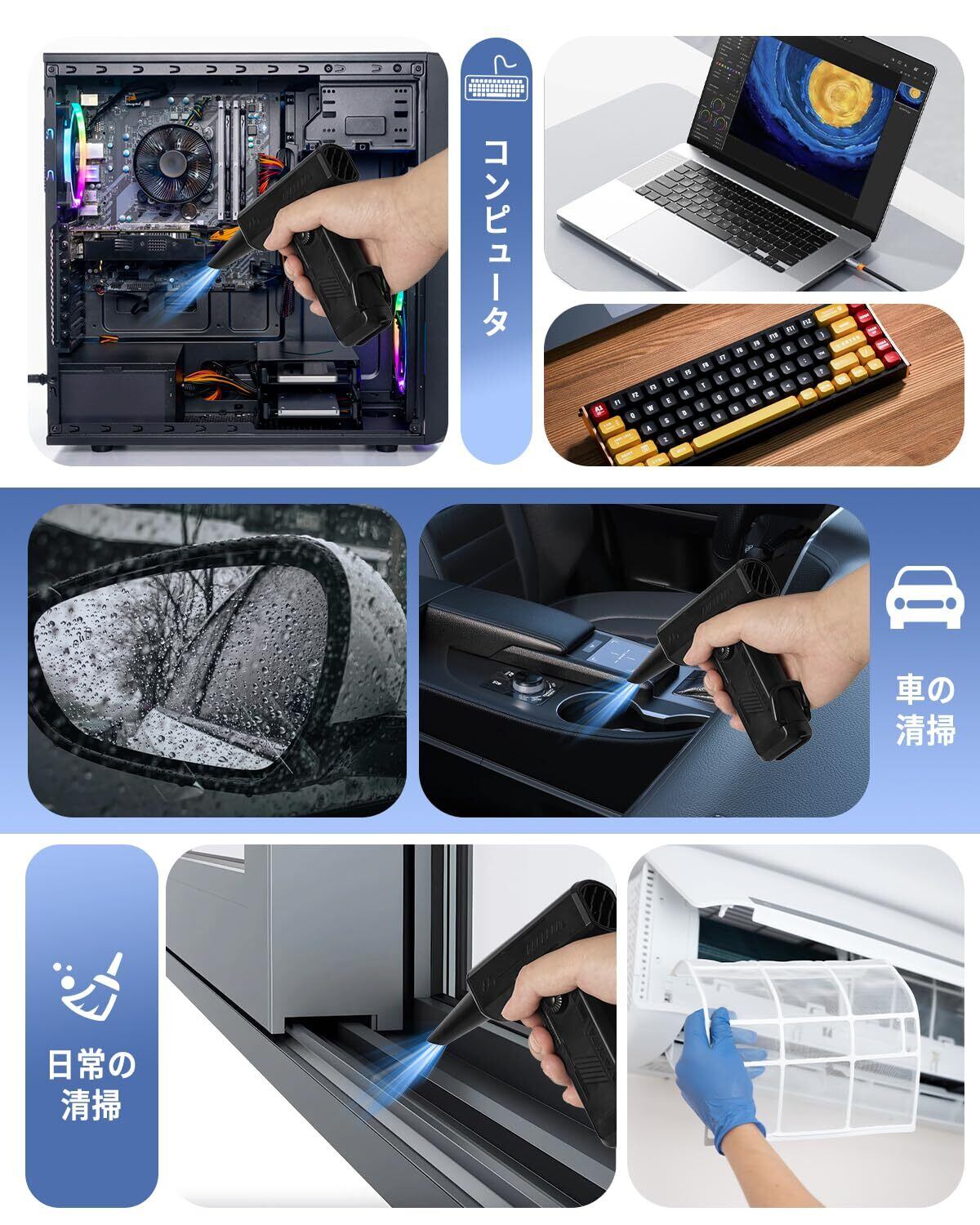 ️【コードレスで携帯に便利】このエアダスターは、サイズが121×77×30mm、重量はわずか200gで、手のひらサイズなので片手での操作がとても簡単です。さらに、収納ケースも付属しており、使わない時はコンパクトに保管でき、持ち運びにも便利です。軽量でポータブルな充電式電動エアダスターは、軽さとコンパクトさを兼ね備えた小型設計で、仕事場や車内での使用にも最適です。このエアダスターは、車内の埃取りや洗車後の水滴の吹き飛ばし、家電製品の埃掃除(扇風機、エアコンなど)、車の除雪作業、パソコンのキーボード、マザーボード、CPUクーラー、PCケースなどのパーツの埃取り、カメラレンズや光学センサーなど精密機器の掃除、そして窓やソファなど部屋の掃除まで、さまざまな用途で大活躍します。コンパクトでありながら、高い機能性を持つこのエアダスターは、日常の細かな掃除を効率よくサポートします。