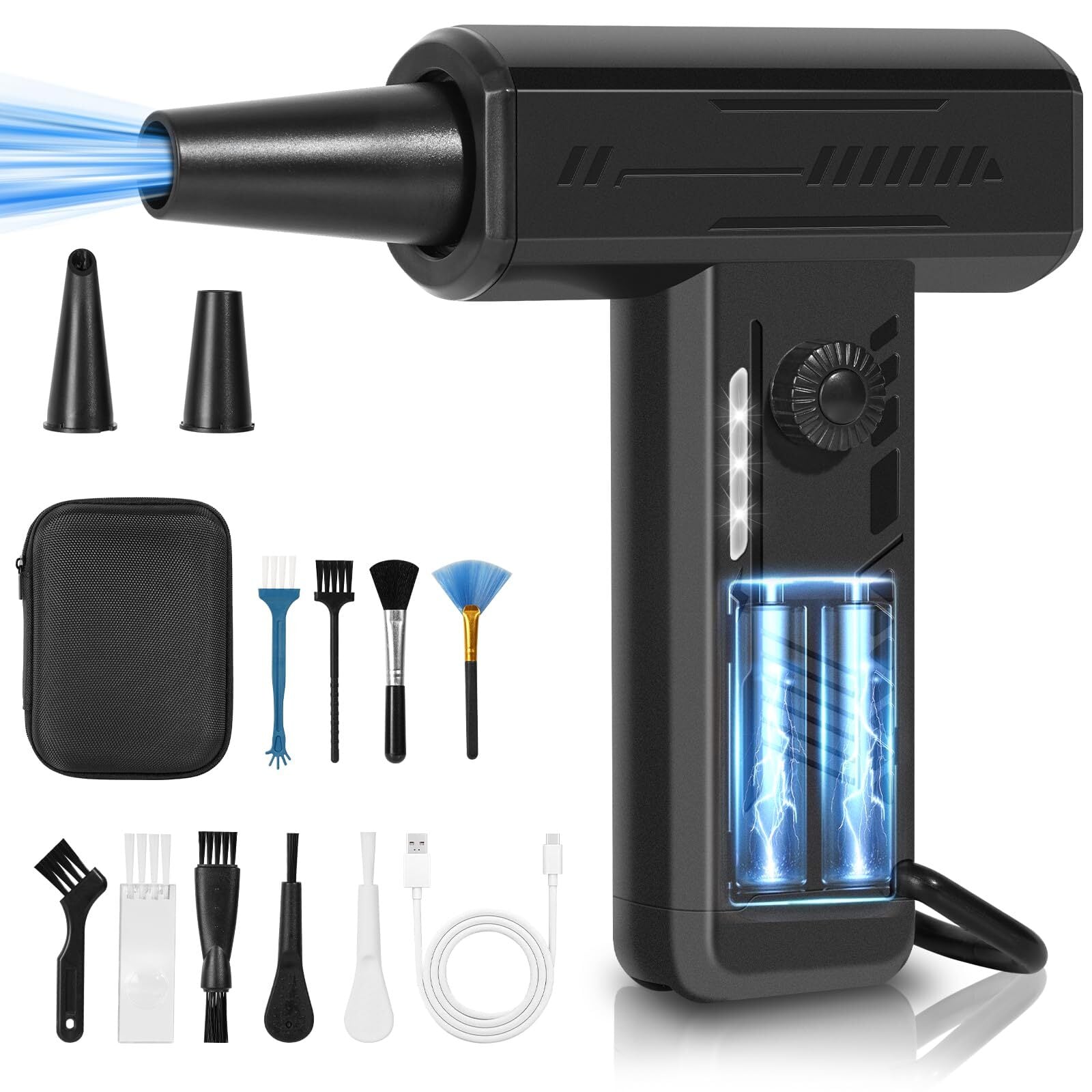 【在庫処分】エアダスター【2025年高水準傑作 業界圧倒的な風速】電動エアダスター ブロワー 超強力200000RMP高速回転 無段階風量調整 8000mAh電動エアダスター USB Type-C充電式 200g 小型 2種類ノズル付き PC掃除/キーボード/家具/車内/エアコン/洗車用 収納ボックス付き エアコン照明/防災 日本語取扱説明書付き