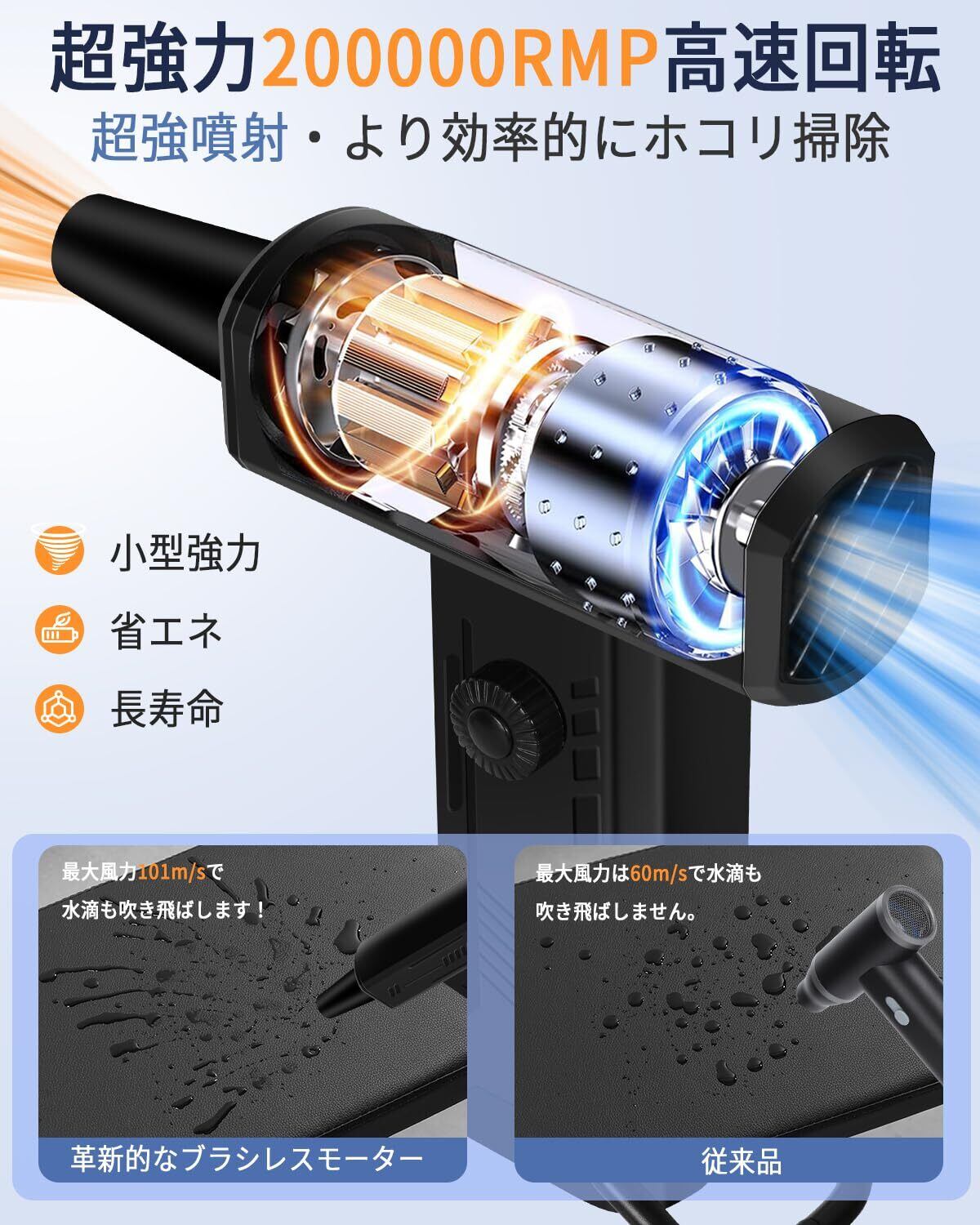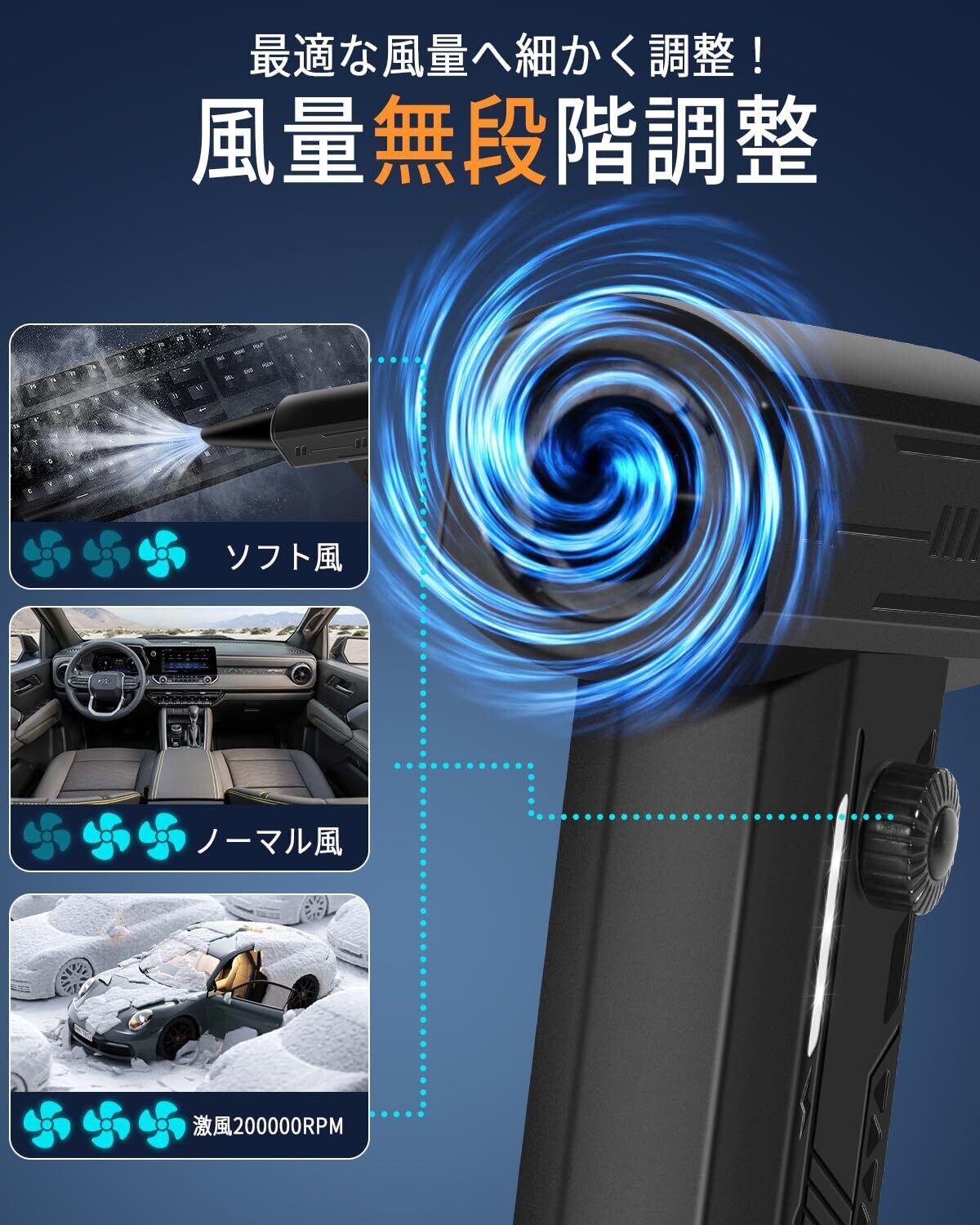 エアダスター【2025年高水準傑作 業界圧倒的な風速】電動エアダスター ブロワー 超強力200000RMP高速回転 無段階風量調整 8000mAh電動エアダスター USB Type-C充電式 200g 小型 2種類ノズル付き PC掃除/キーボード/家具/車内/エアコン/洗車用 収納ボックス付き エアコン照明/防災 日本語取扱説明書付き