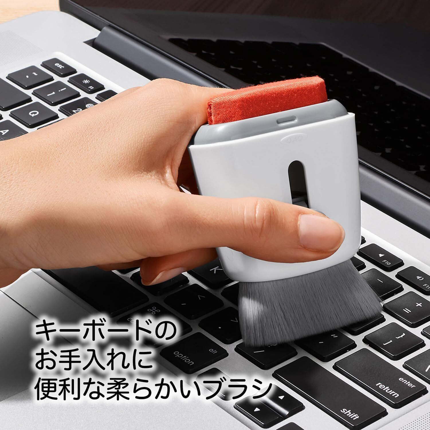 OXO(オクソー) キーボード&液晶クリーナー スライド式ブラシとマイクロファイバーの2種が付いた一体型クリーナー