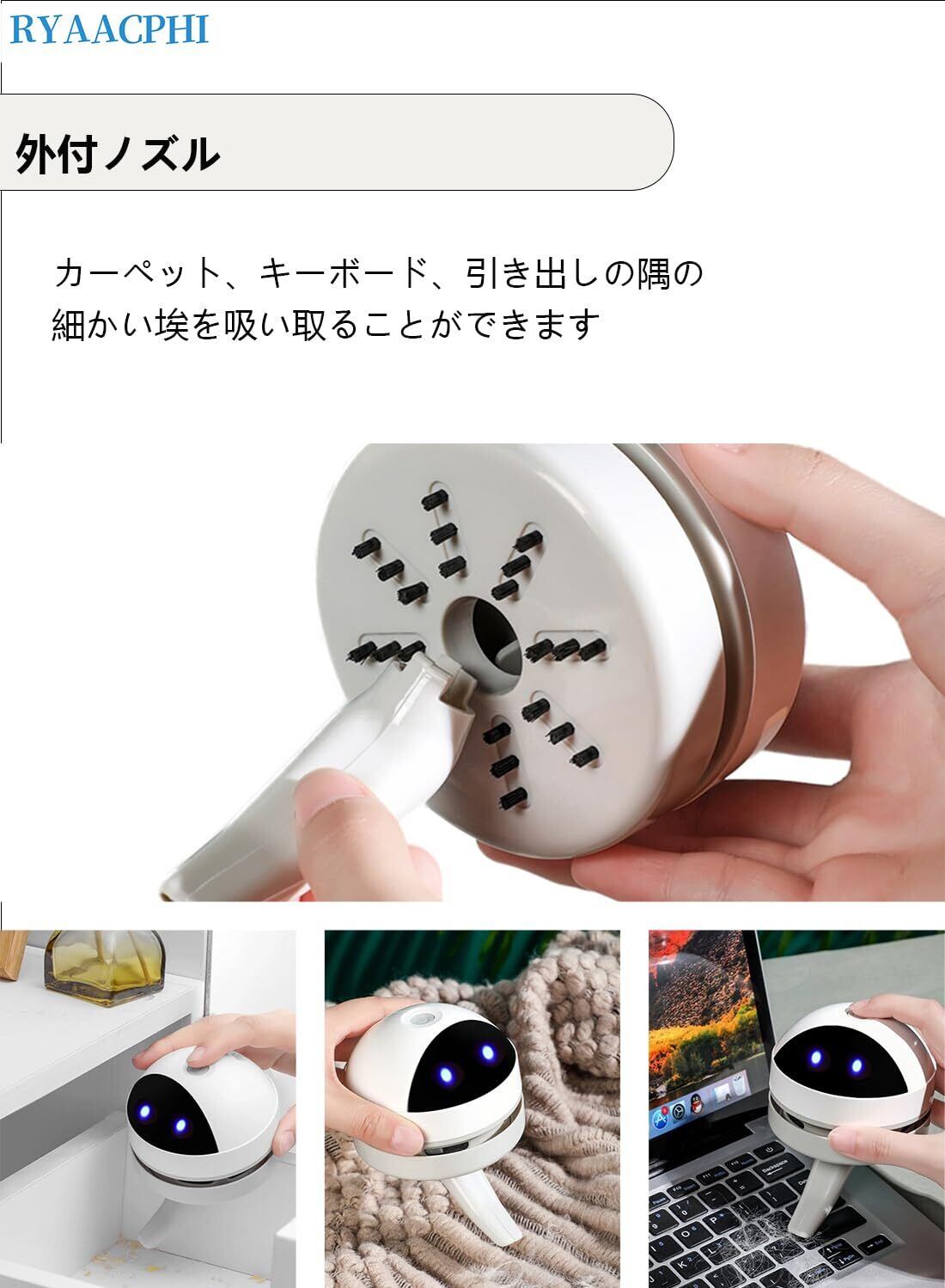 Ryaacphi デスク掃除機ミニ、消しゴムカスクリーナー 、卓上クリーナー、コードレス&ポータブル、ダスト&パンくずスイーパー、かわいい漫画ロボット、USB、デスクトップ/テーブル/キーボード/ソファなどのほこり/髪の毛/ペットの毛/パンくずを簡単に取り除く、軽量設計