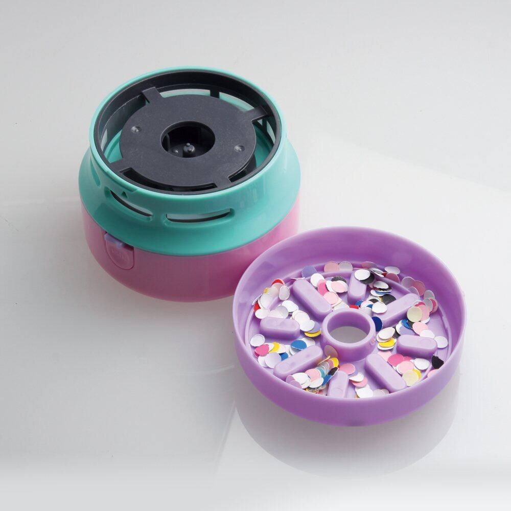 使う場所を選ばない、乾電池式のコンパクトな卓上掃除機です。