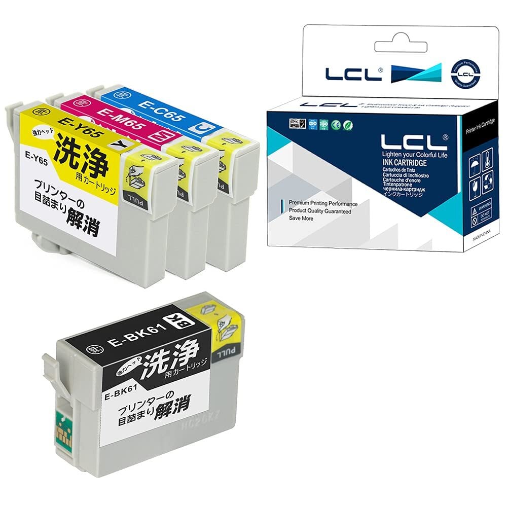 LCL プリンター 洗浄液 IC4CL6165 ICBK61 ICC65 ICM65 ICY65 (4色セット)【プリンターの「目詰まり」「かすれ」解消】【洗浄カートリッジに入れ替えてヘッドクリーニングを行うだけ】対応機種:PX-1200/1200C3/1200C5/1200C9/1600F/1600FC3/1600FC5/1600FC9/1700F/1700FC3/1700FC5/1700FC9