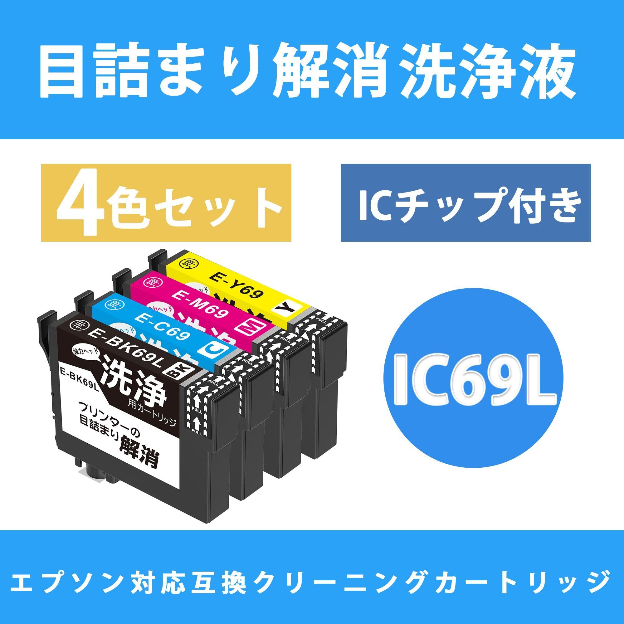 【数量限定】LCL プリンター 洗浄液 IC4CL69L ICBK69 ICC69 ICM69 ICY69 (4色セット) 【プリンターの「目詰まり」「かすれ」解消】【洗浄カートリッジに入れ替えてヘッドクリーニングを行うだけ】 対応機種: PX-045A PX-046A PX-047A PX-105 PX-405A PX-435A PX-436A PX-437A PX-505F
