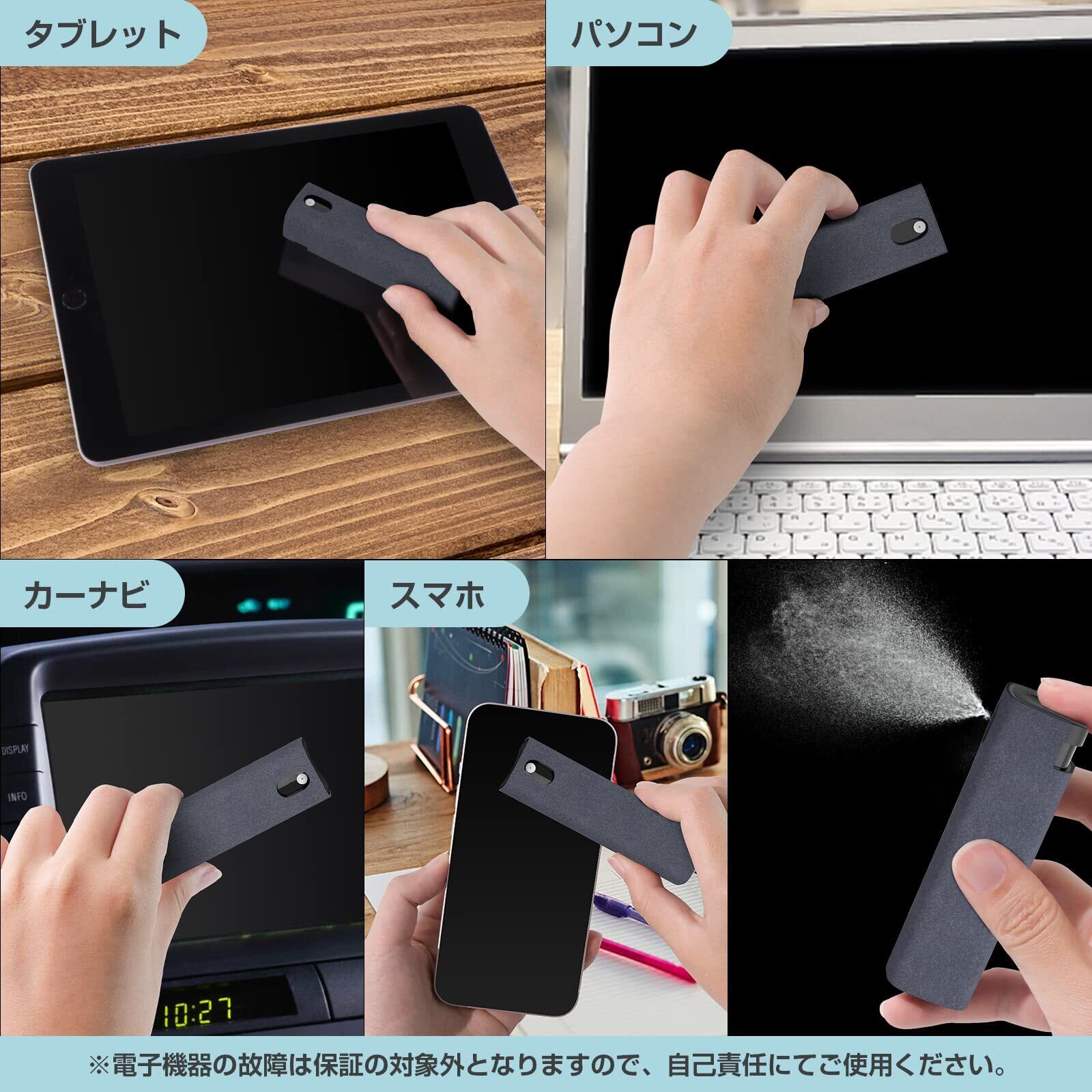【様々なシーンで大活躍】このQ1スクリーンクリーナーは4面全てを覆っているファイバークロスが、ホコリを吸着する性質があるため液晶画面の掃除に大活躍しています。パソコン、スマホ、タブレット/iPad、テレビ(TV)やカーナビなどに対応可能です。●電子製品を清掃する際に、接続ポートに液体を入れないようにお気を付けください。●ご注意:腐食性液体と濃度75%以上のアルコールは使用不可!