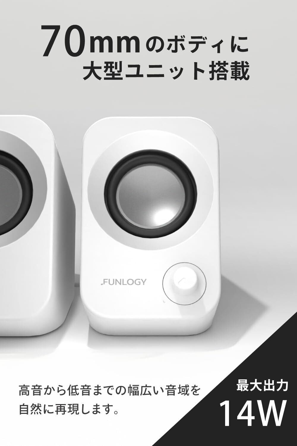 FUNLOGY Speaker(スピーカー/PCスピーカー)【VGP2024受賞 / 総合14W / ステレオスピーカー/パソコン/USB給電/重低音/AUX / 3.5mmピン入力 / 日本ブランド 】 (ホワイト)