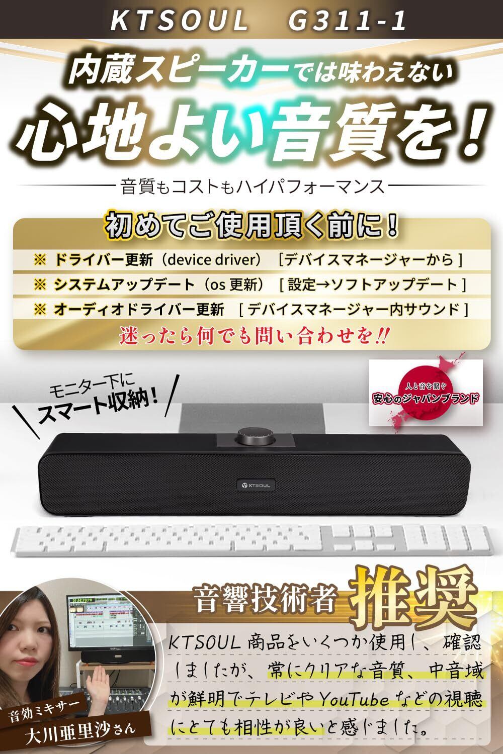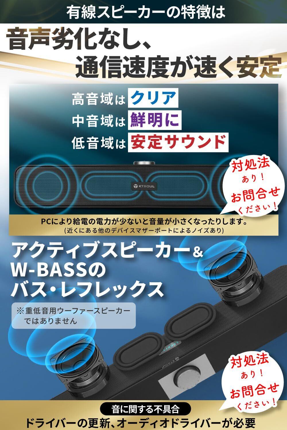 「2024年版G-311-1型」 PCスピーカー ステレオサウンド USBスピーカー USB電源 AUX接続 Wスピーカー W-BASS デスクトップ/ノートパソコン/スマホ/ゲーム機 KTSOUL マットブラック