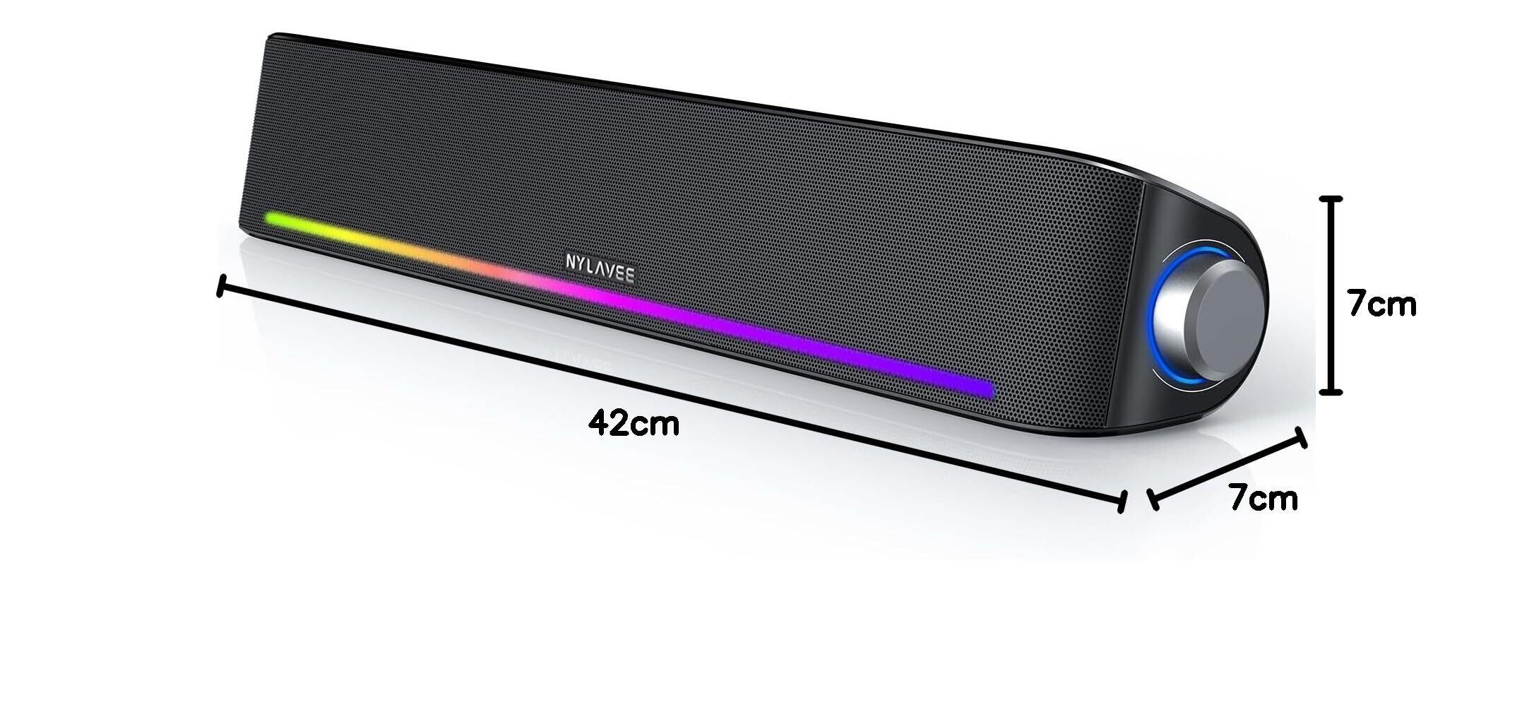 Nylavee PCスピーカー サウンドバー Bluetooth5.0 & AUX接続 4つのスピーカーユニット LEDライト搭載 大音量&豊かな低音 ラップトップ、タブレット、スマートフォンに対応、パソコンスピーカー (LEDライト)