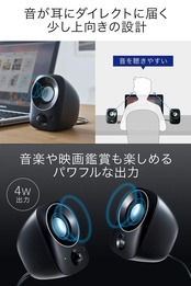 電源をUSBポートから供給する USB 給電方式の USBスピーカー です。最大出力4WでUSB電源ながらパワフルで迫力のある音声再生が可能です。