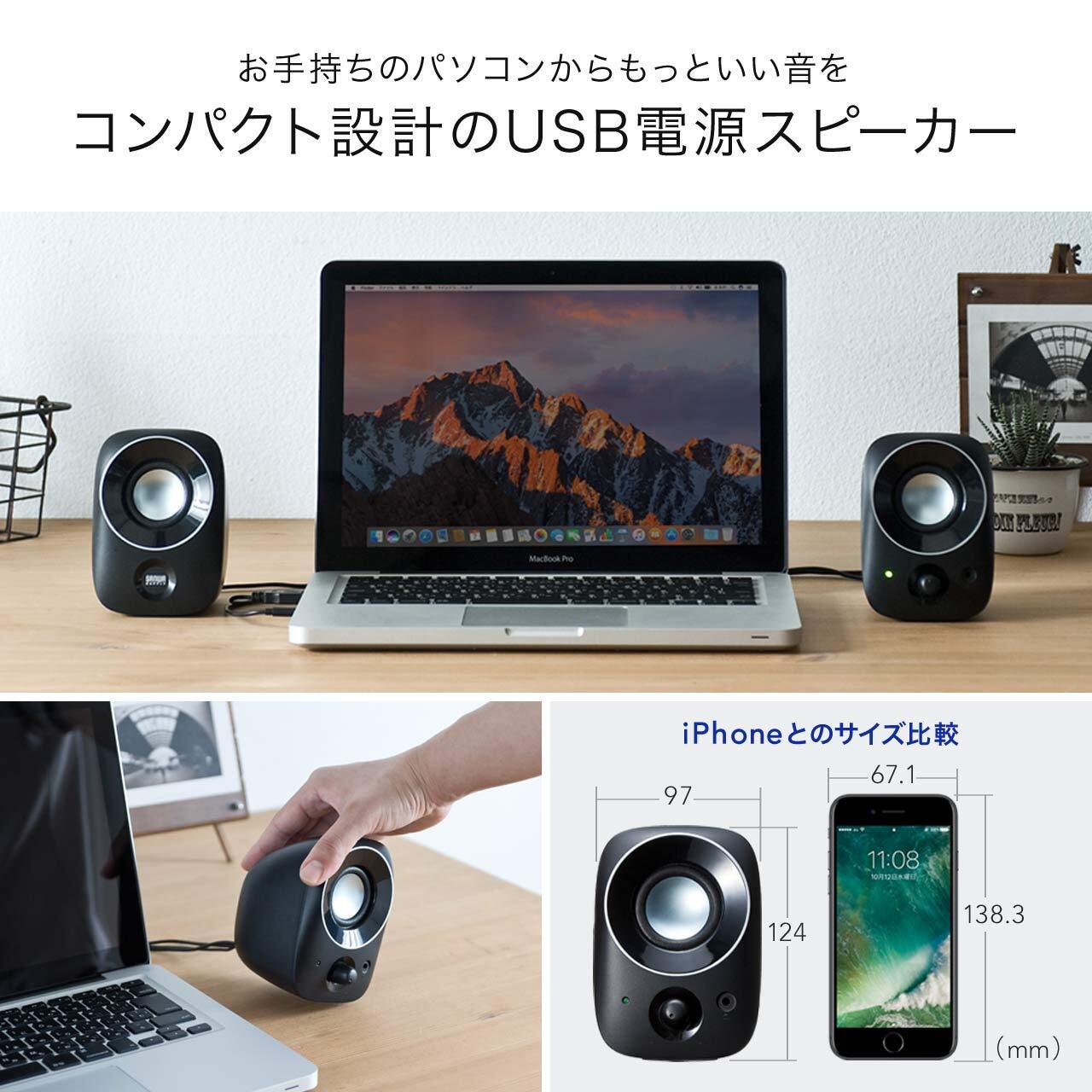 サンワダイレクト PCスピーカー 小型 USB電源 3.5mm接続 ヘッドホン対応 1個 400-SP067