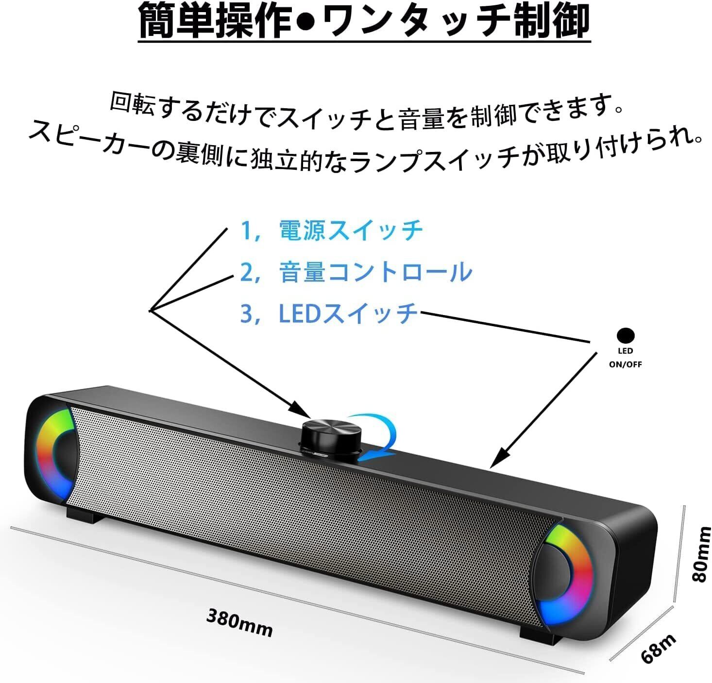 PC スピーカー、ゲーミングスピーカー、パソコン スピーカー、USB スピーカー、RGB ゲーミングスピーカー デスクトップ/ノートパソコン/スマホ/ゲーム機に対応