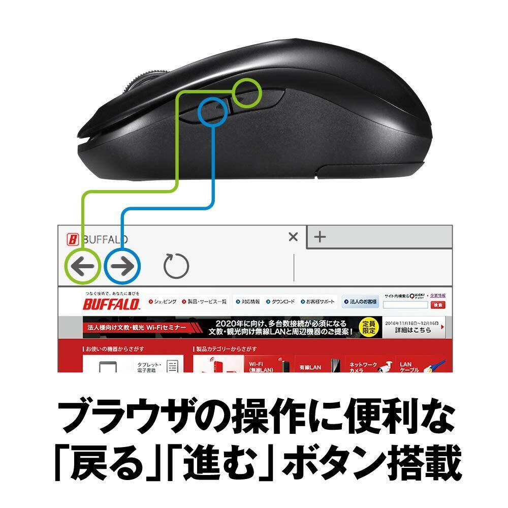 バッファロー マウス 無線 ワイヤレス 5ボタン 【戻る/進むボタン搭載】 小型 軽量 節電モデル 最大584日使用可能 BlueLED ブラック BSMBW315BK