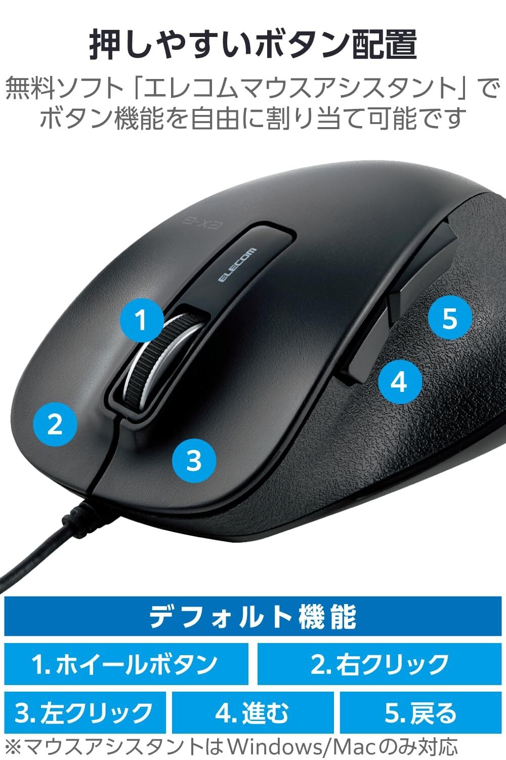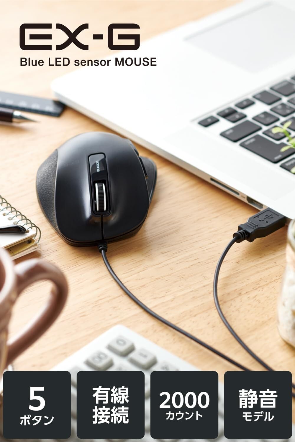 【新着商品】エレコム マウス 有線 Lサイズ 5ボタン (戻る・進むボタン搭載) 静音 BlueLED 握りの極み ブラック M-XGL10UBSBK